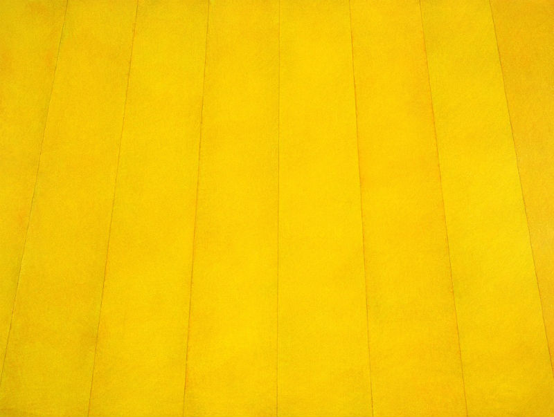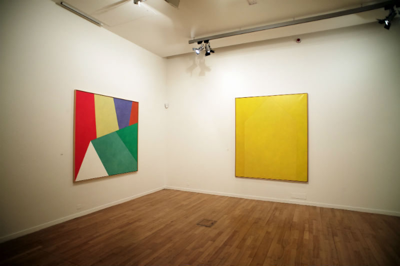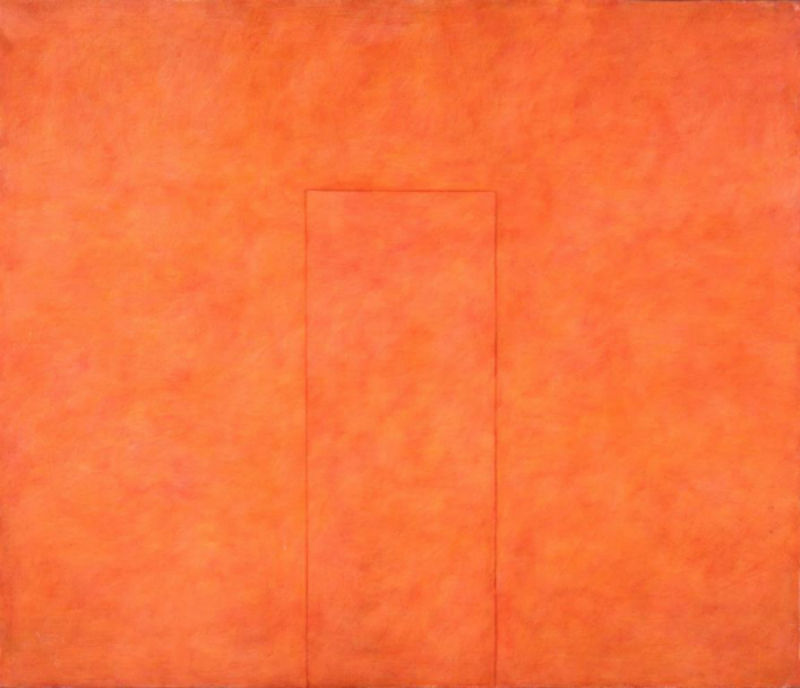 Nas salas seguintes vêm-se algumas das telas do artista: é antes de mais a cor que surpreende nestes quase monocromáticos de ínfimas variações. Mas reconhecemos imediatamente formas, aqui também muito simples, alguns traços que constroem um espaço, talvez uma parede, ou um soalho, ou uma porta, ou um tecto: de modo algum uma descrição, expressão da realidade, mas um simples esboço, uma alusão do que poderia ser; não são verdadeiramente telas abstractas, puras composições mentais, há aqui um chamamento do material, do concreto, do físico. De modo algum uma materialidade da pintura, lisa e fina, sem que nada obstrua a relação com imagem, também não é um vasto jogo de variações coloridas e luminosas como nos diapositivos, mas uma discreta ligação ao real, como um eco dessas tábuas sobre as quais andamos ou a abertura nessa parede por detrás de nós.
