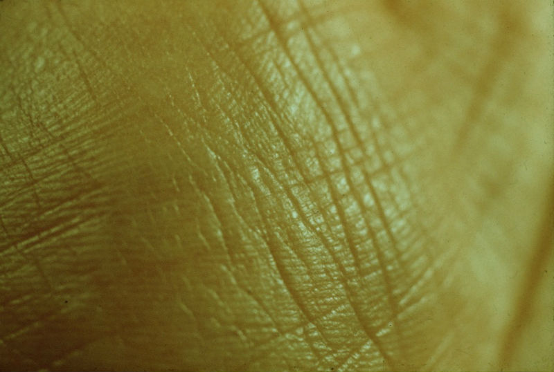 A mão, justamente, é um dos seus temas prediletos, e toda uma sala é consagrada a este «utensílio» essencial a todo o artista, com desenhos a pastel, uma pintura e sobretudo um conjunto de fotografias da pele da sua mão como uma amostra ou atlas em grande escala. Se os pasteis compõem mãos irreais, mutantes e estilizadas, a série de fotografias é mais perto do real: cores cruas, pregas, linhas da palma da mão, toda uma geografia de montes e vales. Isto pode parecer banal hoje em dia, mas em 1975, a partir deste tema vulgar resulta nesta obra inovadora.