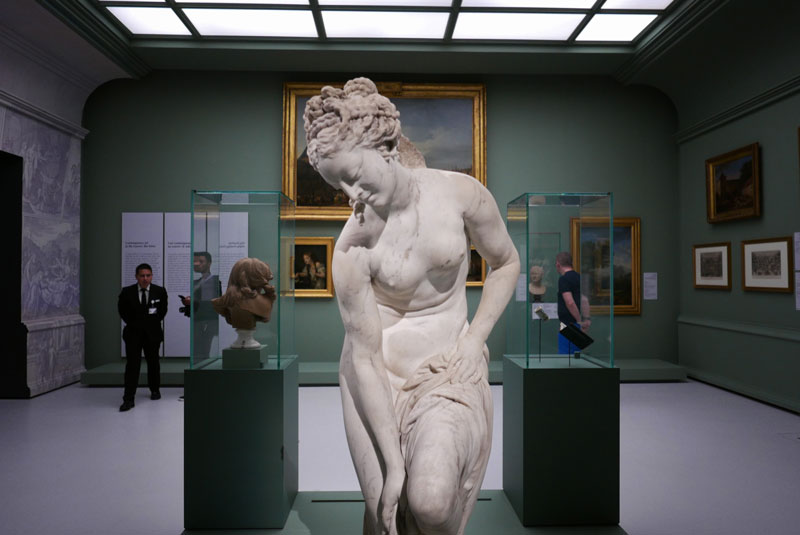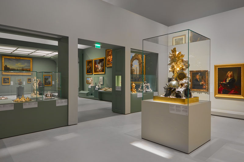 Sob a curadoria de Jean-Luc Martinez, presidente to Museu do Louvre, e de Juliette Trey, curadora do museu, a exposição clarifica a arte, a ideia, e as ideologias que sustiveram a criação do museu do Louvre há mais de dois séculos em Paris. Esta primeira exposição temporária do Louvre Abu Dhabi conta com 150 obras de arte, incluindo pintura, escultura, mobiliário e peças de cerâmica de toda a parte do mundo que faziam parte da colecção privada da Realeza Francesa, posteriormente definindo a primeira coleção do Museu do Louvre. Desde o primeiro momento, a exposição propõe ser uma viagem no tempo, remetendo-nos para os interiores do palácio de Versailles com uma projeção cinematográfica do seu interior. Transportados para o século XVII, nos tempos áureos da Corte Francesa, seguem-se duas esculturas de Jean-Baptiste Tuby em mármore branco, que relatam a história de Galatea a neta do Deus Oceanus apaixonada por Acis, um humilde pastor. Estas duas esculturas, originalmente colocadas uma em frente à outra nos jardins de Versailles na Grotte de Téthys, com a sua delicadeza e in-temporalidade, remetem-nos para a estética da Antiguidade Clássica Grega e Romana que predominava nos jardins, que durante a década de 1660 definiu-se como um museu aberto. São duas das variadas obras que definem a primeira secção da exposição, composta por peças da coleção real do Rei Louis XIV, algumas delas herdadas dos reis anteriores, que adornavam os jardins e os apartamentos reais no palácio de Versailles. Salienta-se ainda nesta secção o seu retrato pintado por Jean Garnier, em sua honra, e os vasos em pedras semi-preciosas que adornavam os seus aposentos e muito contribuíram para a reputação de Versailles como um palácio artístico. Enquanto os primeiros museus apareciam pela Europa, especialmente em Roma e Londres nos meados do Seculo XVIII, Paris sentia a necessidade de criar o seu próprio museu. Acompanhado pelos desejos de Louis XV e de Louis XVI, de tornar as suas colecções acessíveis ao público, o Palácio do Louvre, a sede do governo monárquico francês desde a altura dos Capetos, surgiu como o espaço ideal. Com a corte a viver em Versailles, o Palácio desabitado foi-se transformando: em 1692 com a criação de uma galeria de esculturas na Sala das Cariátides, e pouco depois tornado-se a sede da Royal Academy of Painting and Sculpture, criando lugar para os estúdios dos melhores artistas e artesãos Franceses. Tornando-se uma sede artística e cultural, a partir de 1699, o Louvre acolhe também os Salões de arte promovidos pela Academia, atraindo um vasto publico para estas primeiras exposições colectivas. Este ‘palácio’ artístico experimental é ilustrado no quadro de Hubert Robert, ‘The Grand Gallery of the Louvre’ (c. 1801–1805). Composta por outras obras criadas neste contexto, salienta-se ainda nesta segunda secção da exposição o ‘Clock of the Creation of the World’ (1754), conceptualizado pelo astrónomo Claude-Siméon Passemant (exemplifica bem a multidisciplinaridade do Louvre, onde nele se aplicam as técnicas de escultura e mecânica), a pintura de Nicolas Bernard Lépicié’s, as esculturas de Jean-Baptiste Pigalle, ou ainda os desenhos de Charles Le Brun que pretendiam expressar as “emoções da alma”, como afirma o descritivo das suas obras. Mais do que ser um centro de arte, estes primeiros espaços no palácio proponham uma centralização de desenvolvimento estético e o inicio de uma democratização da arte. Por fim, a terceira secção, ilustra a abertura oficial do museu, inaugurado durante a Revolução Francesa em 1793, materializando o objectivo de tornar a colecção privada da realeza Francesa (considerada na altura a maior colecção de arte da Europa) acessíveis ao público. Durante as conquistas Napoleónicas variadas obras foram conquistadas, contudo, a vocação e visão do estabelecimento de um museu universal já tinha nascido. Durante as décadas seguintes, com a “descoberta” de novas civilizações, obras artísticas Egípcias, Persas e das ilhas do Pacifico são trazidas para o Palácio, compondo uma coleção unida pela sua universalidade. Salienta-se um vaso Barberini em cobre, atribuído a Dawud ibn Salama al-Mawsili dedicado ao príncipe Ayyubid que regiu Aleppo entre 1239 e 1260, ou ainda uma pequena escultura da Ilha da Páscoa, que exemplifica o fascínio pelo primitivismo que se iria desenvolver ao longo do Sec. XX, nas obras de Pablo Picasso, Modigliani e Brancusi. Esta universalização e democratização da arte que define a gênese do Museu do Louvre, é invocada não só pela exposição temporária, mas pelo próprio museu do Louvre Abu Dhabi, que propõe uma unificação cultural, através de uma nova forma expositiva. De facto, explica o Louvre Abu Dhabi, todas as exposições temporárias que se seguiram, pretenderam do mesmo modo, mostrar ideias comuns presentes nas criações das diversas civilizações. Mais do que ser um percurso pela gênese deste museu, a exposição estabelece uma alusão à transformação de uma sociedade através da arte. Nas variadas obras lê-se a perfeição do Renascimento, a expressão do Primitivismo, a espiritualidade das criações Medievais ou ainda o transcendentalismo Egípcio. Estabelecem-se paralelismos, não só entre os museus e as culturas mas entre gêneses criativas que ultrapassam os limites do tempo e as fronteiras do espaço, comunicando com as dimensões emocionais e espirituais do ser. A arte não é um caso isolado, mas sim um diálogo de uma Humanidade. Compreender o universalismo artístico é compreender a unidade do ser; é promover tolerância, paz e união, entre povos, tempos e territórios. Numa dimensão histórica, insere-se o homem nas teias do tempo. Numa dimensão artística, conceptualiza-se e define-se um legado universal. Numa dimensão humanitária, define-se uma nova visão para o mundo. Deste modo
