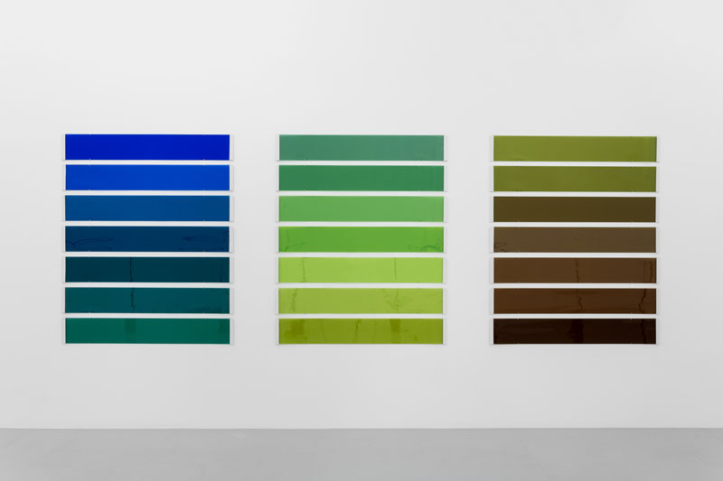 Em “Indexing Water” Irene Kopelman expõe uma pesquisa em torno à relação da água com a luz, a partir de técnicas da oceanografia e da limnologia, trabalhando a partir do ímpeto taxonómico dos seus primeiros métodos na construção de uma linguagem visual que classificasse a vitalidade dos corpos de água, a partir da sua cor e da sua transparência, do modo como se deixam atravessar, como refletem ou refratam a luz. Uma vitrine com vários minerais ordenados pela sua côr recebe-nos no andar inferior da Kunsthalle Lissabon. Estes minerais são referidos na escala de cores de Lorenz von Liburnau, naturalista austríaco que pretendia associar cores minerais a diferentes nuances da cor da água, estendendo a escala que François Alphonse Forel concebeu a partir de soluções químicas e que se iria tornar padrão na oceanografia. A escala de Forel-Ule, reproduzida numa das paredes da sala de exposição, é usada no estudo de lagos e oceanos, ajudando a classificar a actividade biológica de determinado corpo de água. Este esforço de classificação cromática tem de resto paralelo com o trabalho taxonómico da biologia e zoologia, também elas apoiadas por escalas de cor, um léxico visual que se estabeleceu pelo esforço minucioso da descrição da natureza, sendo muitas vezes acompanhado por definições metafóricas (a “cor do sangue de um coelho acabado de matar” que artista refere na folha de sala), anúncios poéticos dos limites desta linguagem, da resistência ao trabalho classificatório que a complexidade dos corpos vivos e dos movimentos das águas opõe à tarefa científica. Tratamos de uma questão de linguagem; sem texto, trata-se de estabelecer um léxico visual e de traçar os seus limites. A sala é atravessada por um tubo de vidro de cor azul de cerca de 8 metros, 10 vezes mais curto que a medição de visibilidade mais profunda obtida com o disco de Secchi, 79 metros a 13 de Outubro de 1986 no mar de Weddell, na Antártida. Este método de medição consiste em submergir um disco branco de 30 cm anotando a profundidade a que deixa de ser visível, permitindo pela transparência da água indicar indicar o grau de actividade biológica ou de poluição de um certo corpo de água. Na esquina da sala, um disco de vidro castanho de 1 cm indica a 1:10 a leitura feita no Estreito de Madura, na Indonésia, em 1984. Os limites do visível são representados por cores dos extremos da escala, contendo-a, atribuindo-lhe uma profundidade e referindo-a a uma pureza, o azul da água destilada, inerte, em contraponto ao castanho denso de partículas que também ele torna difícil a proliferação de seres vivos. Trata-se então da uma linguagem da vitalidade, de uma possibilidade de habitar relativa do meio aquático, cuja complexidade pode apenas ser evocada pela escala de cor e que trata de lugares intermédios e de negociações. É este o espaço preenchido pelos desenhos frágeis de fitoplancton, organismos microscópicos que formam a base da cadeia alimentar dos oceanos, que se por um lado vão turvar subtilmente as águas, vão transformar a luz em alimento, incorporando o dióxido de carbono presente na água através da fotossíntese. Trata-se de procurar conhecer a água pela luz que a atravessa. Numa esquina da sala da exposição surge um detalhe aproximado da gruta azul de Capri, de um azul que se aproxima de uma leitura da escala de Forel-Ule. A luz entra na gruta por um orifício subaquático criando a ilusão de ser a própria água a iluminá-la, preenchendo-a de um azul ondulante. Esta água é na verdade o mobilizador deste exercício, mais do que o seu objecto, permitindo ela própria pensar o mecanismo do conhecimento nas suas implicações vitais. Irene Kopelman colaborou neste trabalho com Marcel Wernand, investigador do Royal Netherlands Institute for Sea Research (NIOZ) dando seguimento à sua pesquisa em torno às escalas de cores utilizadas pelas ciências naturais (que já se tinha debruçado sobre as paisagens vulcãnicas) e em torno aos métodos de representação usados pelos naturalistas no seu trabalho de campo. Nascida em 1974 na Argentina, vive e trabalha em Amesterdão.