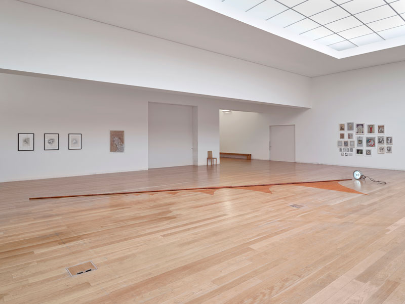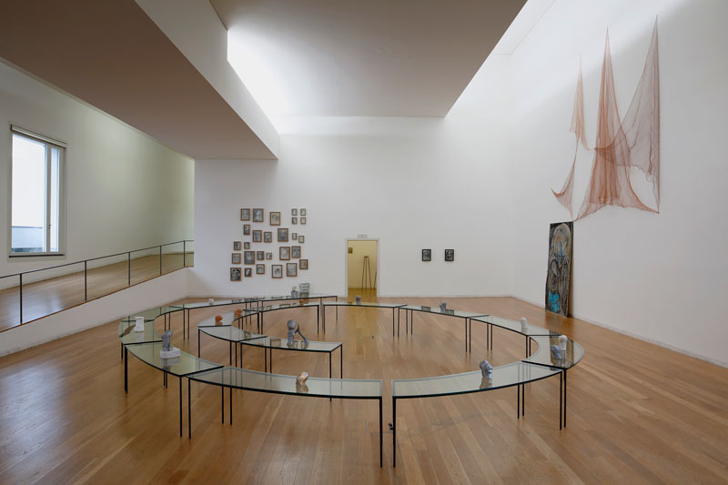 Trata-se, não só, da primeira grande mostra de trabalho de Merz na Europa, como da sua estreia a solo, na medida em que, até à data, apenas tinha participado, pontualmente, em colectivas e sem particular destaque. Esta ocasião, patente desde 19 de janeiro, constitui o segundo momento, após a exposição inaugural no Hammer Museum (Los Angeles), ambas comissariadas pela curadora chefe da instituição americana, Connie Butler. Suzanne Cotter teve, ainda, um papel determinante no planeamento e na concretização deste projeto em Serralves e destacou a obra da artista como "extremamente forte e relevante". A 6 de fevereiro de 1999, quando o espaço do museu consistia apenas na Casa de Serralves, expôs-se o universo criativo e plástico de Mário Merz (Milão, 1925 - Turim, 2003). Este fora um dos artistas italianos mais reconhecidos do séc. XX e um dos pioneiros a desenvolver uma arte pobre, através de materiais e processos alternativos aos tradicionais, como resposta à imensa crise social e económica que Itália sofreu entre os anos 60 e 70. A exposição intitulada A Casa Fibonacci foi particularmente marcante para a instituição portuguesa e permanece, ainda, a nível nacional, como referência no contexto da respetiva corrente artística. Hoje, é com a artista que foi mulher de Mario que se desenha um momento de igual importância, desta vez já no edifício de Álvaro Siza. Este é o momento de conhecer Marisa individualmente, como mulher e como mãe que cria a partir do seu diário doméstico e que imprime, mesmo nas obras mais abstratas, um certo caráter representativo e narrativo. Deixa-se, também, motivar pelo natural, pelo tempo e pelo que significa o percurso, tanto vivencial como artístico. Marisa Merz traz a arte povera a Serralves, revelando um trabalho que parte de objetos pré-existentes, do quotidiano e da natureza e que, através de elaboradas experimentações materiais, resultam em formas tão invulgares quanto orgânicas. Vários elementos que utiliza na sua produção artística pertenciam a Mário e, inclusivamente, foi com ele que produziu uma extensa mesa em espiral, peça agora exposta em Serralves. O Céu é um grande espaço apresenta três décadas de uma obra que não se encontra disposta por ordem cronológica, mas de acordo com as diferentes dinâmicas criativas que a curadora identificou. A exposição começa, precisamente, com uma maioria de peças recentes das quais se destaca visualmente a última instalação que a artista produziu, composta por redes e barras de ferro dispostas de modo amplo no chão. Tal escolha de superfície é particularmente recorrente na obra de Merz e de outros autores da mesma corrente artística pois, ao nível do solo, as obras tendem a permanecer num estado mais cru, mais real e mais próximo da matéria. A arte povera é, justamente, um dos movimentos que mais beneficia de uma exposição informal, despojada e até primária para que o seu contacto com o espetador se concretize de um modo mais direto. Evita-se, assim, uma espécie de contemplação religiosa que, recorrentemente, é induzida a toda a obra quando colocada numa estrutura expositiva formal, tal como pelintos ou molduras. A colocação das peças no chão, a par da escolha de materiais e processos de produção pobres rebate e desafia a capitalização da arte, afastando o objeto artístico do seu entendimento como objeto de consumo. A fuga às lógicas do mercado da arte é, pois, um dos principais interesses dos artistas poveros que representam as fragilidades dos contextos sociais em que se encontram. Também na pintura, Marisa apresenta uma invulgar escolha de materiais, por sinal tão curiosa quanto as próprias representações que nela se revelam. Entre figuras humanas e outras, mais recentes, quase angelicais, surgem inúmeros rostos que se multiplicam, ainda, em desenhos e esculturas. Estas últimas destacam-se particularmente, na medida em que, enigmáticas e aparentemente inacabadas, poderão compreender-se como representativas do processo de produção da artista. As pequenas peças escultóricas emergem de uma urgência de manipulação do material e de um simultâneo desinteresse em levar a representação até ao nível do realismo.