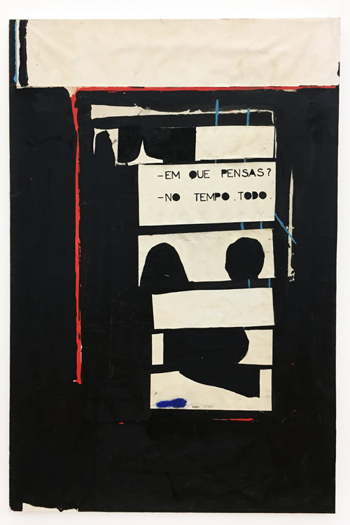 Dia 8 de Fevereiro, no Museu de Arte Contemporânea de Serralves, inaugurou uma exposição particularmente marcante, comissariada por Miguel von Hafe Pérez, que, como identificou o novo diretor João Ribas, é o resultado de um olhar de curador e de um conhecimento de historiador. Esta ocasião é de enorme importância, na medida em que se trata da maior retrospectiva alguma vez realizada do incontornável artista Álvaro Lapa (Évora, 1939 - Porto, 2006). A Fundação de Serralves e o Centro de Arte Moderna da Fundação Gulbenkian já tinham realizado duas mostras do trabalho do artista, em 1994, com cerca de 107 obras. Nenhuma dessas mostras foi, contudo, de uma magnitude idêntica à da mais recente, com mais de 300 peças, algumas nunca antes vistas, inclusivamente cedidas pela família do autor. Agora, descobrem-se pinturas, desenhos e outros objetos relativos a um vasto período de criação, de 1963 a 2005. A presente exposição parte de uma pintura (aqui em baixo) do artista que contém escrito Em que pensas? No tempo todo (1979-80) e prolonga-se até ao dia 13 de maio.