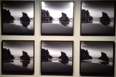 Barros, que vive entre Macau e Lisboa, é claramente aberto às influências chinesas e japonesas; as suas fotografias de rochas, de areia e água, sobre o tema das marés (são nove, mais um vídeo) foram feitas perto de Sintra, ainda que juremos que essa harmonia quase caligráfica entre rochas irregulares e a planura da areia e da água provém do Japão ou do Sul da China. Barros foi o curador da exposição Lu Nan, neste mesmo museu (onde a qualidade das imagens não foi suficiente para ocultar a fraqueza da postura "ideológica", na minha opinião) e é fácil vinculá-lo aos fotógrafos japoneses como aqueles de Provoke ou como Daisuke Yokota e Sokiko Nomura. O que não diminui em nada a qualidade do seu trabalho de pesquisa, tanto visual quanto narrativo, sobre a imagem e a palavra; só lamentamos unicamente a última série, um alinhamento de retratos demasiado clássicos.