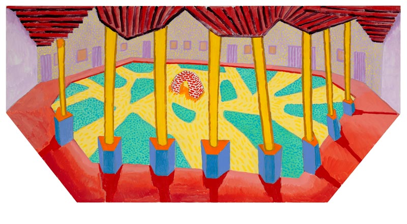 While enforcing all the strategies mentioned above in only one work, Mr. Hockney creates a master experience enhanced by the conjunctures inside the gallery space. The viewer can experience a Renaissance-Like highly realistic perspective with a continuous visual representation of a narrative based in the real world. By providing the key elements to trigger our memory and knowledge, the artist overcomes the inherent limitations of a random visual narrative by presenting a story that the viewer may identify. This full process of recognizing familiarity of the scene is highly facilitated when the artist portrays all the paintings present at the rest of the show at Pace Gallery inside the theatrical scene of this work. It is also through this allegory of mirroring objects from the inside of the studio narrative into the gallery space that the interactive experience is unveiled, allowing a two-way flow of information. This element of interaction of utmost importance makes the viewer feel the freedom to get involved with the virtual environment created by the artist. Meanwhile, the virtual reality experience is achieved without wearing the technological gadgets when the audience abandons the frontal viewing area of this work and adventures the rest of the gallery space and is confronted with the real canvases paintings. Furthermore, in the presence of those canvases and as a result of the cut off edges, the viewer is pulled back to David Hockey’s astute interpretation of perspective, trying one more time to find their own place inside these rooms where all the narratives are happening and which they are also part of. In Leonardo da Vinci’s words: “There are three aspects to perspective. The first has to do with how the size of objects seems to diminish according to distance: the second, the manner in which colors change the farther away they are from the eye; the third defines how objects ought to be finished less carefully the farther away they are.” We must agree with the accuracy of Leonardo’s statement, nonetheless the digital age emerged in Human history, and as Mr. Hockney has often mentioned “Perspective is a law of optics,” and he also wisely concludes that: “The moment you cheat for the sake of beauty, you know you're an artist.”