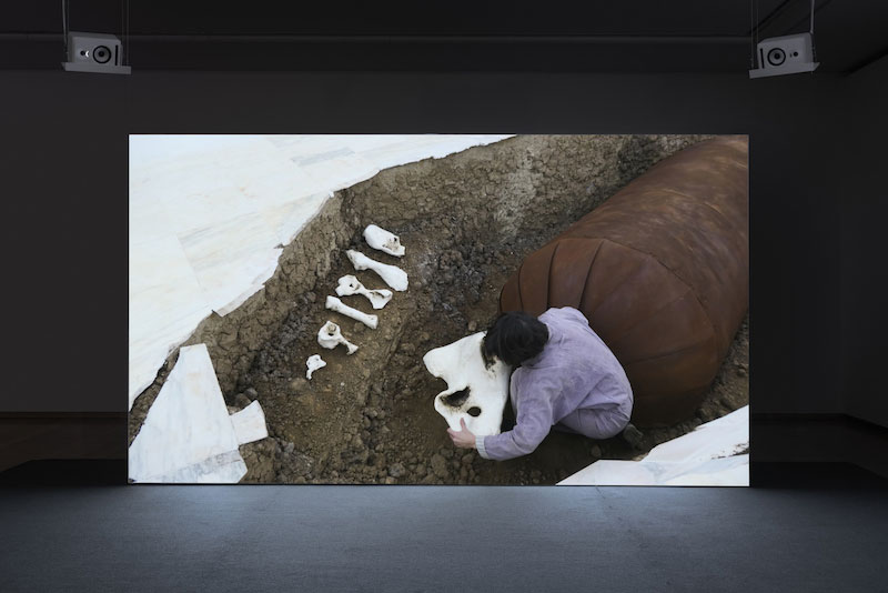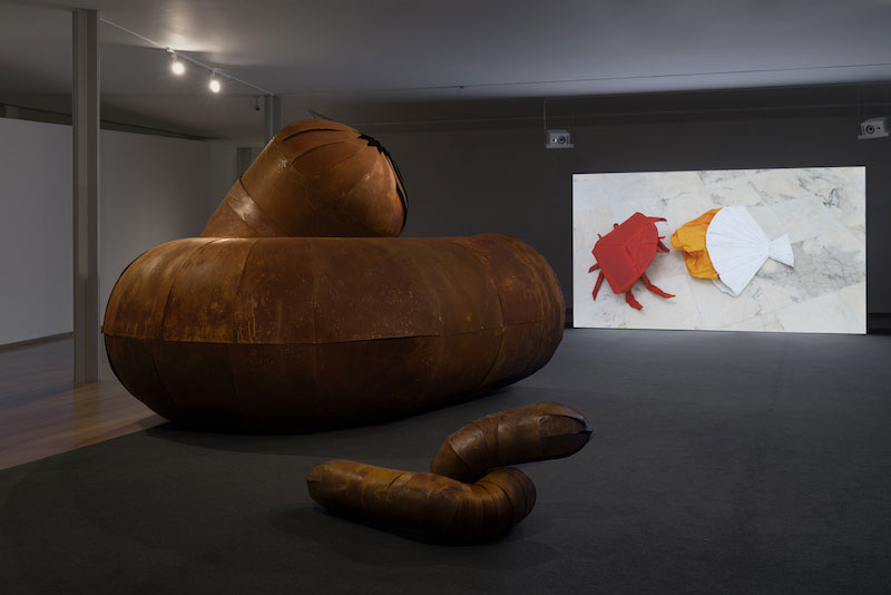 CAROLINE MESQUITAASTRAYGALERIA MUNICIPAL DO PORTO Palácio de Cristal Rua D. Manuel II 4050-346 Porto 16 MAR - 19 MAI 2019 ASTRAY, de Caroline Mesquita (1989, França), é um trabalho que se divide em dois momentos tão autónomos quanto unidos. O primeiro teve lugar na Kunsthalle Lissabon, de dezembro de 2018 a fevereiro de 2019, e, enquanto Prologue, introduziu a narrativa cujo desenvolvimento tem agora lugar no segundo palco, na ala superior da Galeria Municipal do Porto, desde o dia 16 de março. A primeira exposição terá sido, eventualmente, a mais impressionante, onde a obra se revelou, irrompendo com força do chão da galeria em Lisboa. Estabeleceu o contexto das várias personagens, construções em ferro e fósseis vertebrados, elementos que suscitam curiosidade e uma certa inquietude no espectador a quem se apresentam. Enquanto site-specifics, foram concebidas propositadamente para cada um dos respectivos espaços expositivos, sendo que a segunda ocasião foi comissariada por Sofia Lemos (1989, Portugal), investigadora e curadora independente sediada em Berlim, em parceria com a Kunsthalle Lissabon. Caroline Mesquita tem construído um interessante e sólido percurso profissional que conta com exposições individuais e coletivas em várias e relevantes instituições culturais internacionais. Em Portugal, é a partir de ASTRAY que se apresenta e introduz o seu trabalho. A artista cria uma grande diversidade de peças, umas mais provocadoras e outras mais experimentais, algumas geométricas e inúmeras orgânicas. Nos últimos anos, tem concebido uma espécie de quasi-objetos ou quasi-sujeitos, gestuais e ativos que se manifestam como seres vivos. Caroline Mesquita [1] explica que procura materiais que a confrontem aos mais variados níveis, considerando fundamental para a sua criação artística relacionar-se com os elementos e instrumentos a partir dos quais trabalha. Durante o processo construtivo, questiona-se até onde é que a matéria a pode levar e de que modo esta se manifesta e reage perante a sua transformação. Como tal, um dos materiais de eleição da artista tem sido o metal, fácil de moldar, com uma constante e contínua alteração cromática a par da sua manipulação e, ainda, detendo uma indubitável longevidade. No caso de ASTRAY, o exercício com o ferro oxidado é notável e atribui às figuras inanimadas um movimento e uma articulação próprios de tudo o que tem vida. A idoneidade construtiva da artista é também clara no trabalho do gesso e da cera, cujos resultados se materializam em formas com uma rara similitude a ossos e fósseis. A artista expõe e debate o paralelismo entre diferentes tipologias de objetos: os que resultam da natureza e os que o homem produz. Questiona as suas múltiplas divergências bem como as condições, características e lógicas próprias de cada uma das duas esferas, interrelacionando-as, confundindo-as e, até certo ponto, anulando-as. ASTRAY existe, pois, enquanto fluxo e comunicação entre esses universos, o natural e o humano, propondo-os como objetos de reflexão e de problematização. Os fósseis ou, neste caso, as suas representações, são, simultaneamente, representativos da passagem do tempo, podendo ser compreendidos enquanto provas, rastos e fragmentos de instantes, lugares, histórias e vidas. Assim, Caroline Mesquita também estabelece um cruzamento e um diálogo entre o passado, o presente e o futuro. O trabalho parte, efetivamente, de uma relação espaciotemporal e ergue uma espécie de realidade e de universo paralelos que confluem num imaginário de exploração arqueológica com narrativas de ficção científica. Como Paul Valéry identificou em L'Homme et la coquille (1994), a principal diferença entre os produtos da natureza e as fabricações humanas é que as primeiras continuam a crescer após serem concebidas, ao contrário das últimas que não evoluem autonomamente. Porém, no que diz respeito ao trabalho da artista, verifica-se como se trata de algo que, quando exposto, mesmo estando formalmente terminado, desenvolve-se numa dimensão metafísica, de sentido e de experiência por parte de quem a recebe. A curadora convoca, ainda, o fim do mundo e desafia a uma reflexão sobre novos começos. Remete para o investigador e matemático Athanasius Kircher (1602-1680) cujo estudo se centrou, justamente, no "intercâmbio entre os elementos básicos da terra, como uma coisa viva, respirando o sustento do universo" [2]. Sofia Lemos refere a corrente concepção de que o planeta se divide entre um universo subterrâneo de energia inerte e fossilizada, e uma contrastante superfície, lugar da vida. São também essas dualidades, vida/não-vida e biológico/geológico, que se problematizam no novo filme da artista, com o mesmo título do projeto. No vídeo de 17'43'' observa-se uma ação performativa na primeira instalação, na Kunsthalle Lissabon, que transita entre diferentes ficções e representa o encontro de humanos, não-humanos, animais, motores, máquinas e ossos cuja natureza se desconhece. Exibido na subsequente exposição, reforça a ligação entre esses dois momentos, tendo sido, por isso mesmo, encomendado pela Galeria Municipal do Porto. Ao observar uma concha nas suas mãos, Paul Valéry reconheceu que a simples espiral tem a capacidade de o envolver e conduzir a "superficiais notas e observações, questões naïves, comparações poéticas, inícios de teorias imprudentes" (1994: 113). Ora, é de um modo análogo que se poderá desenrolar a recepção deste trabalho de Caroline Mesquita. A obra, através de uma singularidade tão formal quanto discursiva, preenche e contamina, hoje como antes, o espaço expositivo com uma atmosfera inebriante. As peças, vivas e ativas, expandem-se com tal força, que poderiam ocupar um espaço independente e mais amplo do que aquele que lhes foi destinado. Não obstante, o modelo expositivo adoptado no segundo piso da Galeria Municipa