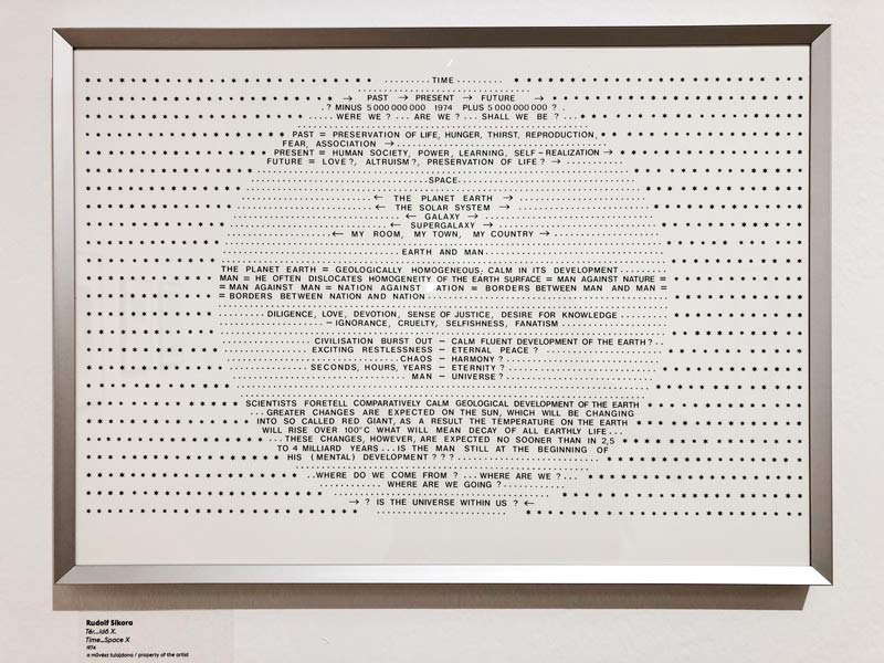 COLECTIVASIGNAL - THE HISTORY OF (POST)CONCEPTUAL ART IN SLOVAKIALUDWIG MÚZEUM Budapest, Komor Marcell u. 1 1095 Hungria 19 ABR - 23 JUN 2019 O museu de arte contemporânea Ludwig Múzeum, em Budapeste, apresenta, desde o dia 19 de abril, uma retrospetiva dos últimos cinquenta anos da criação artística da Eslováquia. O título da exposição, SIGNAL - The Story of (Post)conceptual Art in Slovakia, remete para o pós-conceptualismo, mas o que se dá a conhecer estende-se para além disso. O grande número heterogéneo de obras expostas abarca a evolução e as várias fases da arte eslovaca, resultando numa multiplicidade tanto visual como material, plástica, discursiva e estética, de importante visita. O que atualmente se expõe no museu Ludwig é a continuidade de um projeto que já teve dois momentos anteriores: Soft Codes, no MWW - Wroclaw Contemporary Museum e Probe 1, na Prague City Gallery. A primeira exposição, na Breslávia, explorou a mudança radical na arte eslovaca durante a década de 60, assinalada por uma nova crítica da imagem e da cultura multimédia, resultante do aparecimento de novas formas de produção artística. A natureza dos objetos aí apresentados deteve-se nomeada e principalmente na linha do conceptualismo e do que a ele se agrega desde a land art, à arte textual, à performance, a manifestações ou a documentação via fotografia, inúmeras práticas que, com maior ou menor intensidade, ressurgiram nas duas exposições seguintes. Já em Praga, a exposição anunciou revelar a origem e o desenvolvimento da criação artística dos últimos cinquenta anos da Eslováquia, principalmente das várias formas, códigos e morfologias da arte conceptual então realizada. Por sua vez, a exibição em Budapeste será, provavelmente, a mais completa, plural e próxima do tempo presente. Conta com a participação da maioria dos artistas das edições anteriores, entre outros, e, não abandonando o discurso nelas desenvolvido, introduz novas perspetivas e linguagens. Esta mais recente mostra reúne um imponente espólio de obras que se cruzam e consolidam num forte retrato da arte eslovaca moderna, conceptual e, ainda, dos novos média. No sentido de uma coesa e dinâmica apresentação dos vários artistas e respetivas obras, a exposição no Ludwig Múzeum foi dividida em quatro secções, pelo curador Vladimir Beskid. Como se identifica no texto que acompanha a visita, é imposta uma lógica principalmente cronológica, a começar pela primeira secção, TEXTmania, relativa aos campos de produção artística cuja base é o texto. Um aspeto primordial e fundamental da arte conceptual é, de facto, a inter-relação e a comunicação entre os dois principais sistemas operativos semióticos, o linguístico e o visual. Foi, precisamente, a partir da utilização do campo artístico enquanto plataforma de discurso que, tanto na Eslováquia como em todo o contexto ocidental dos anos 60, a arte ganhou uma nova forma. Exemplo disso é a obra que agora se expõe de Rudolf Sikora (img.6) cuja mensagem interpela o homem, o planeta e o devir. SIGNAL também convida o público a assistir à rebelião dos gestos, em The Zero Gestures, onde se expressa o intuito de alcançar uma criação pura, promovendo o vazio e a ideia de um ponto zero. A utilização de conceitos tais como anti-arte e anti-imagem pode ser compreendida como expressão de recusa e de reação ao caminho que a arte traçava. Expõem-se inúmeras e diferentes possibilidades formais e criativas, caso de Július Koller com Glass of Plain Water (1964), peça concebida enquanto manifesto da interseção entre a arte e a vida. Em contraposição com a procura de um recomeço mais claro e puro, instala-se The Indoor Cosmos, a explosão do cosmos, do universo artístico, do lugar da criação enquanto espaço de experimentação e de aventura. Retorna-se ao do pós-segunda Guerra Mundial, à Guerra Fria e, mais especificamente, ao ano de 1968, quando as tropas soviéticas invadiram a Checoslováquia e a isolaram. Tais ocorrências provocaram tremendos efeitos, entre os quais, repercussões na criação artística eslovaca da época e na subsequente. Poderá destacar-se o trabalho de Stano Filko (img.8) com mapas e fotografias do planeta, do céu noturno e do cosmos que refletem uma visão global do mundo e o desejo de sair do espaço a que o país estava confinado. Por fim, Redefining the Image propõe repensar o que é uma imagem, visual e conceptualmente. Tal segmento da exposição já incorpora os novos média, tanto os analógicos como os digitais, permitindo conhecer quais as influências da sua chegada e inclusão no cenário artístico eslovaco. Simultaneamente, questiona-se a era pós-media e as correspondentes abordagens e estratégias criativas após o ano 2000, a partir de artistas tais como Pavla Sceranková ou Jaro Varga. Nesta última parte da exposição também se mostram objetos artísticos que, concebidos com processos mais primários, já refletiam características e tipologias dos novos média, nomeadamente a cópia, a reprodução e a repetição de elementos. A exposição de Vladimir Beskid, comissário de todo o projeto, é de uma assertividade e solidez absolutas, interrelacionando as obras a partir de um diálogo tão desafiante quanto equilibrado, inusitado e lógico, livre e descritivo. O curador explica os três turning points que constituíram os diferentes modelos socioculturais e artísticos da Eslováquia. O primeiro, entre 1921 e 1924, foi determinado, principalmente, por um grupo de artistas da cidade de Košice, Martin Benka, Gustáv Maly e Jan Hála que inscreveram perspetivas da cidade e dos subúrbios na arte, apresentando temas sociais e motivos urbanos de um modo não-representativo e não subjugado a objetos explícitos. Seguidamente, a principal expansão do conceptualismo deu-se em Bratislava, por volta de 1964/65, quando se transferiu a arte para os locais púb