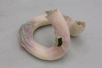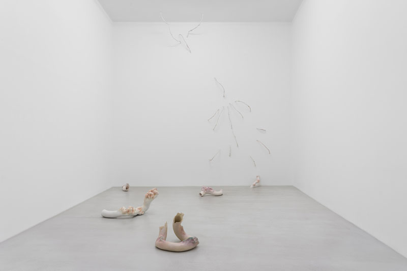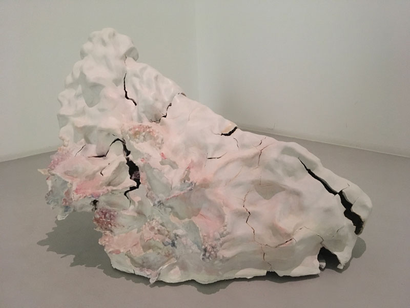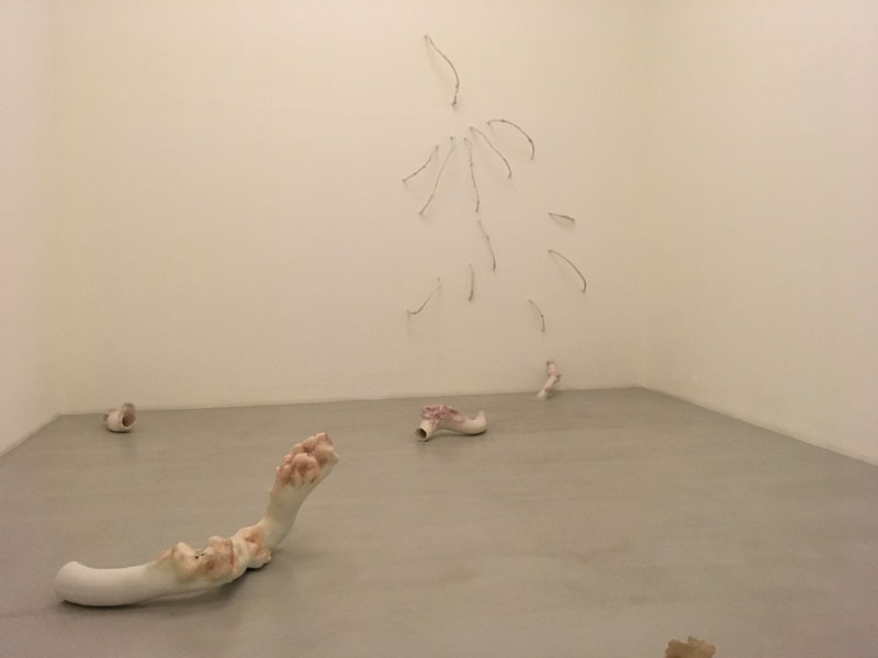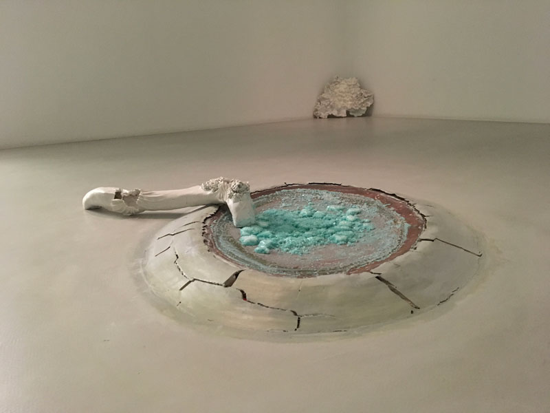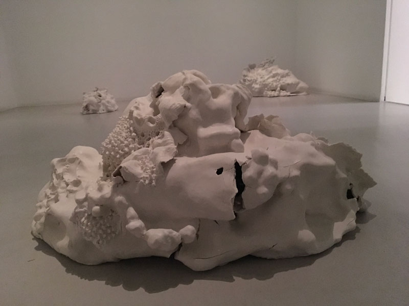 Em Sol Cego a artista transporta-nos para uma paisagem arqueológica «geo-tecnológica», onde a ruína do ser humano e da natureza prevalece como uma simbiose entre a energia e a matéria, o som e a comunicação. As esculturas em porcelana manifestam-se como entranhas orgânicas quase arquétipos de um corpo fragmentado, cujo interior é exteriorizado através de gavinhas florais em proliferação. O espectador caminha entre elas, corroídas pelo tempo, como se de uma «terceira natureza» se tratasse, usando as palavras da artista.
