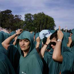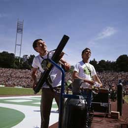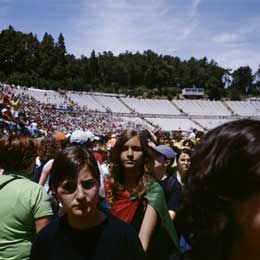 AUGUSTO ALVES DA SILVADie schönste Fahne der WeltGALERIA PEDRO OLIVEIRA Calçada de Monchique, 3 4050-393 Porto 22 SET - 28 OUT 2006 Imagem e Acontecimento“Isto e muito mais foi dito por várias participantes no evento. A verdade é que foi uma vergonha a maneira como as nossas “divas” foram tratadas! Para além disto sabemos também que os crachás de participação foram atirados como se lança comida a piranhas para o meio dos participantes. Sem dúvida uma atitude vergonhosa por parte de muita gente que mais não queria que publicidade… É verdade que acabou por ser bonito e que temos mulheres de guerra mas as mesmas podem queixar-se de não ter atingido muito mais por estes pormenores vergonhosos…” Postado por UltraBraga em http://claques-portugal.blogspot.com/ No documento que anuncia os artistas seleccionados para a edição de 2006 do BESphoto diz-se de uma série de trabalhos de Augusto Alves da Silva testemunharem “a coerência da sua estratégia deceptiva em torno da imagem fotográfica”. Se entendermos como deceptiva uma tomada de consciência dos processos de solidificação do nosso conhecimento do mundo em instantes do falso, então na exposição agora patente na Galeria Pedro Oliveira, o artista continua a seguir este caminho. Tomando um acontecimento real e produzindo imagens num registo formal e quase clássico, o autor plagia, de distância segura, a estética da propaganda num subtil esforço de denúncia. Tomando como objecto uma iniciativa da Federação Portuguesa de Futebol financiada pelo Banco Espírito Santo, pela SIC e produzida pela “Realizar Impact Marketing”, um evento que juntou 18 788 mulheres na formação da maior e “mais bela” bandeira do mundo, Alves da Silva capta a euforia e o ridículo de um momento que pretendeu representar “as mulheres de Portugal”. Invocando a língua alemã através do título, o trabalho obriga-nos a relacionar este acontecimento com o primeiro evento de massas organizado com o objectivo de ser mediatizado através da imagem em movimento, os Jogos Olímpicos de 1936 em Berlim, que tiveram a honra de ser o primeiro acontecimento televisionado da História. Também este evento, muito mais recente, foi televisionado. Foi-o sob o pretexto do apoio à selecção e da “glória” da entrada numa coisa tão profundamente imbecil e destituída de qualquer interesse que não seja a exploração económica da estupidez, como os recordes do Guinness. Infelizmente as semelhanças entre estes dois momentos não ficam por aqui e atingem, ainda que com diferente gravidade, o mesmo âmago de perigo. Tanto um como o outro giravam à volta da construção ficcional de uma bandeira, sendo que no nosso caso era a portuguesa e no primeiro e original a nazi. O tema é, em ambas as situações, a construção de um orgulho nacional. Independentemente da diferença óbvia e fundamental entre os fins, o que ressalta através do trabalho de Alves da Silva é a profunda familiaridade entre os meios. Ainda que a estética totalitária de Leni Riefenstahl tenha sido aqui substituída pela linguagem grosseira do directo contemporâneo e haja, por enquanto a possibilidade de uma distância crítica (como se pode ler no comentário retirado da blogosfera que cito acima), as semelhanças são evidentes e isso pode ser visto claramente através da sobreposição de um olhar reflexivo, como funciona aqui o trabalho fotográfico de Augusto Alves da Silva. É através de um processo de quase mimese das imagens que Riefenstahl apresenta no seu “Olympische Spiele” (“Olímpia”, na tradução portuguesa) que o artista subverte o acontecimento; pela citação localiza-o numa nova estrutura de sentido. É a fotografia contra a televisão. Sem a verborreia e o encadeamento narrativo e que era suposto emoldurá-las estas imagens podem servir um propósito contrário, revelando a estrutura do engano e as metodologias do “impact marketing” que impõem o acontecimento e, em simultâneo, retiram ao espectador o tempo para o pensar.