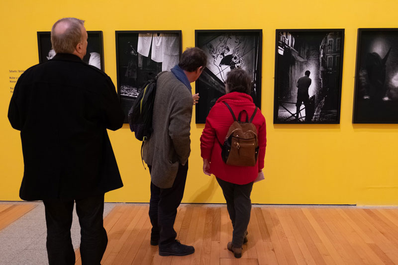 Quando foi convidado pelo curador João Miguel Barros para fazer uma série de fotografias sobre Lisboa, Andreas H. Bitesnich já havia feito séries de cidades como Nova York, Tóquio, Paris, Viena e Berlim, mas agora o desafio seria outro. Ele teria que apresentar as fotografias pela primeira vez numa das maiores instituições de Lisboa, o Museu Coleção Berardo, e ter como espectadores pessoas que provavelmente conheceriam a cidade muito melhor do que ele. Nesse caso, o olhar estrangeiro foi usado a seu favor; além, claro, do facto de o austríaco ter um olhar treinado de fotógrafo com uma longa carreira de trinta anos. Inaugurada a 20 de fevereiro, a exposição “Deeper Shades: Lisboa e outras cidades” apresenta um núcleo representativo dos cliques tirados entre 2018 e 2019 durante as três viagens com duração de dez dias cada que ele fez por aqui, além de outros cinco grupos de fotografias feitos nas “outras cidades”, entre 2011 e 2017. Os “tons mais escuros” ou “sombras” do título da exposição do Museu Berardo são justamente as características que fazem com que as imagens em preto e branco transitem de fotografias pessoais de viagem para algo esteticamente mais desafiador. Ao restringir os 256 tons de cinza para quarenta ou cinquenta, Andreas dá ênfase no preto e no branco. Quanto maior o contraste das fotografias, mais difícil é de entender o que são os objetos retratados. A Praça do Comércio fica quase irreconhecível, assim como o monumento ao Marquês de Pombal, envolvido por um cenário de uma densa neblina e uma esquisita forma branca no céu, que só é possível reconhecer depois de se ler a legenda. Em “Vista de rua”, a fotografia dá ênfase à geometria, luz e sombra da fachada de um prédio de concreto, semelhante à estética inaugurada por fotógrafos modernistas brasileiros como Thomaz Farkas e German Lorca – a imagem poderia ter mesmo sido feita na década de 1950. A distorção causada pelo contraste, pelos ângulos não-convencionais, e pelo efeito dos vidros e reflexos também transformam um clique de jornalistas no estádio do Benfica numa nuvem de pinceladas, e fazem uma “Estação de elétricos sob o sol matinal” parecer um beco escuro no meio da noite. “Quando alguém pára na frente de uma foto para entender melhor o que está vendo, e gasta tempo com isso, meu objetivo está cumprido”, contra Andreas. É essa uma das maneiras que ele pode ganhar a atenção dos espectadores que conhecem Lisboa muito melhor do que ele.