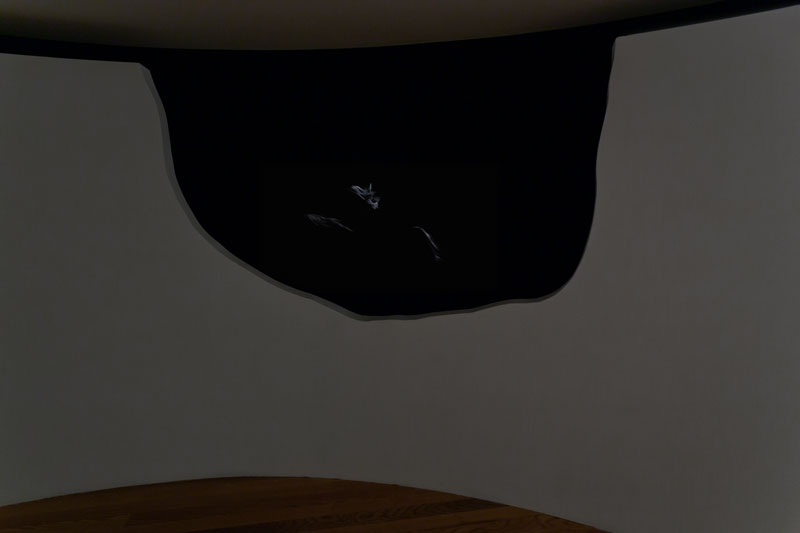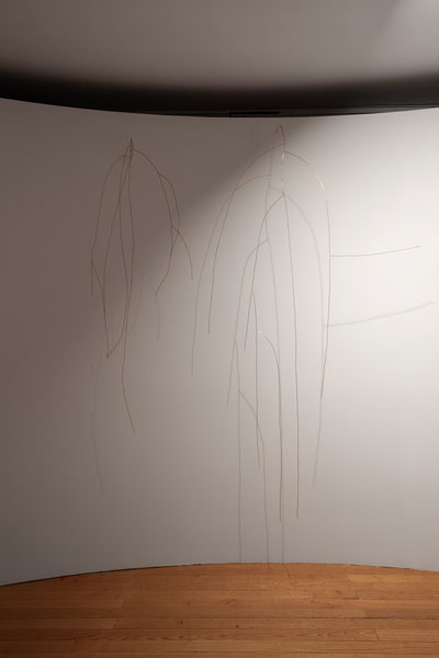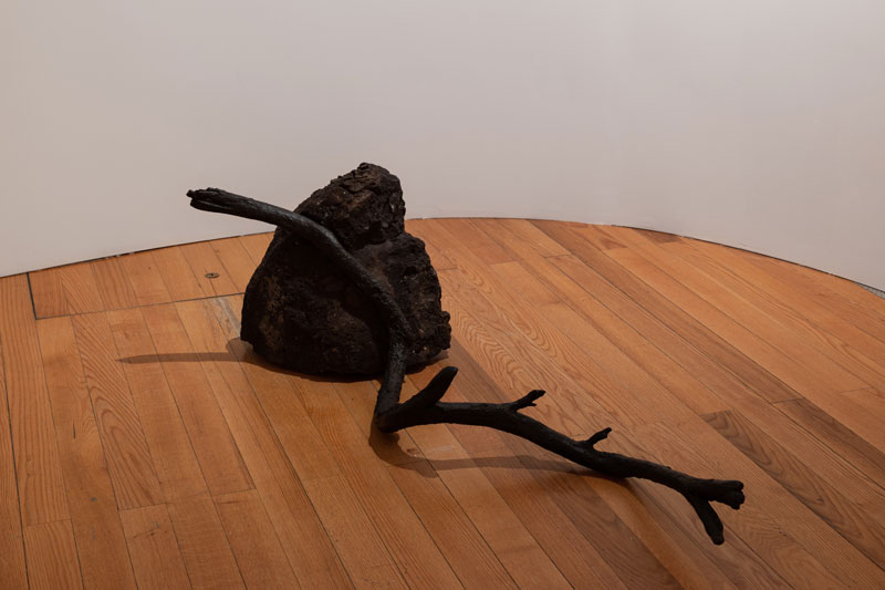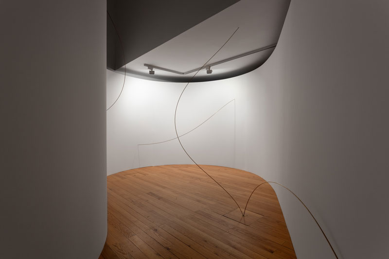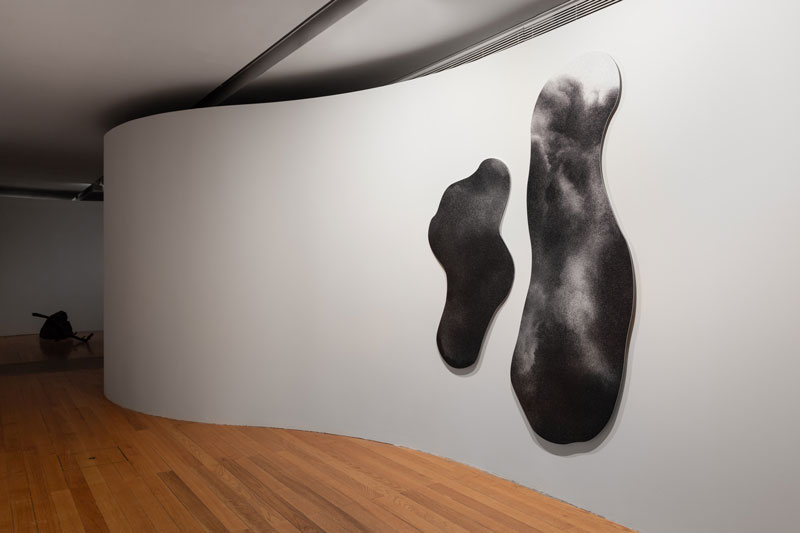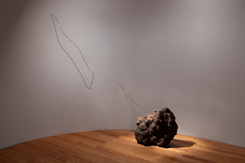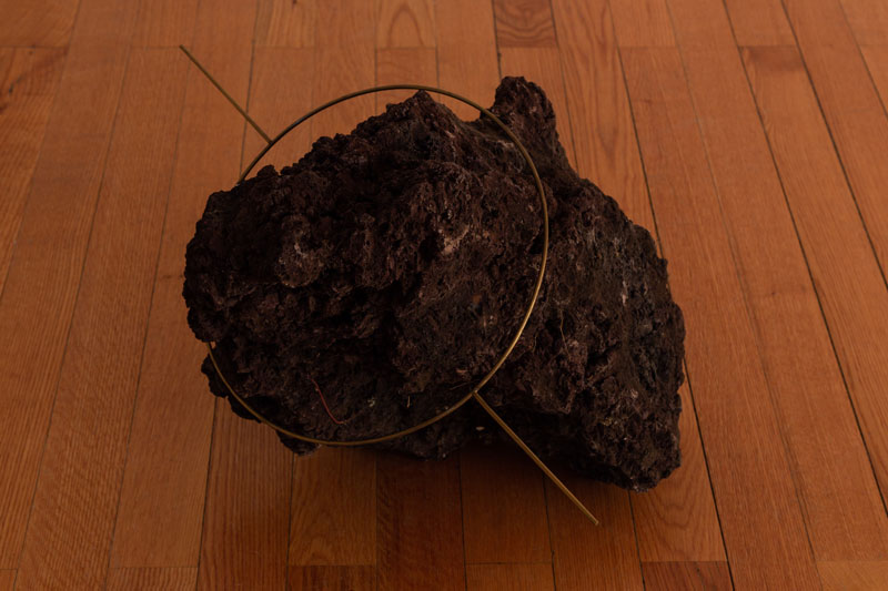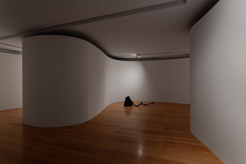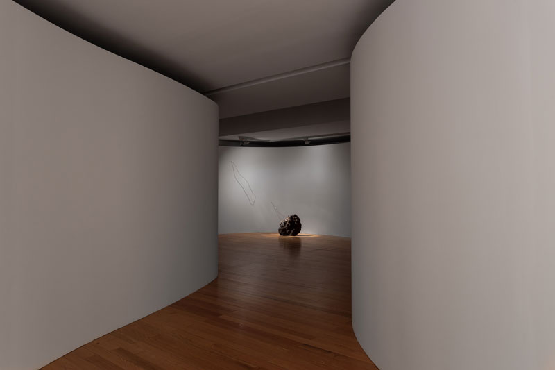 O mais identificável e, porventura, o mais intrigante na obra de Joana Escoval é o carácter imaterial inseparável de muitas das suas peças. Apesar da robustez e amorfia dos materiais que utiliza - como a rocha vulcânica, o ouro ou o metal – as obras que cria são delicadas e frágeis, extrapolando a materialidade e o formalismo dos seus constituintes, para criar algo propício de desencadear significações metafisicas, elevação espiritual ou até mesmo sentido poético. A renovada arquitetura do espaço materializada em contornos orgânicos, formando um corredor ondulante, incita o espectador a percorrer um trilho, não visível e não antecipável (que se revela inesperado e abrupto), à medida que se encontra no espaço com as obras da artista. De forma cifrada, as obras criadas pela artista, coexistem num todo contínuo, em mutação e inalterável equilíbrio.