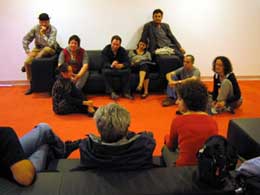 COLECTIVABusca PólosCENTRO CULTURAL VILA FLOR Avenida D. Afonso Henriques 701 4810-431 Guimarães 23 SET - 16 DEZ 2006 Busca Pólos, Solos e ColectividadesO trabalho de campo, prática emprestada pelas bases da Antropologia clássica, constitui, no presente, uma forte possibilidade metodológica de criação estética, ao fundar-se em duas direcções contíguas: a experiência de terreno e a construção colectiva. João Sousa Cardoso, in “Antropologia e estética: uma alternativa do trabalho de campo”, Olímpico, nº 0. A exposição que está de momento patente no Centro Cultural Vila Flor, “Busca Pólos” um projecto do Salão Olímpico, ao contrário do que se tem vindo a verificar em alguma comunicação de imprensa, não pretende ser uma “exposição retrospectiva dos últimos anos” da actividade de uma “galeria” sediada no Porto. O Salão Olímpico, que desde Novembro de 2005 deu por encerrado a sua actividade, esteve sempre longe do modus operandi artístico tradicional e institucional. O Café Olímpico da Rua Miguel Bombarda na cidade do Porto disponibilizou uma área da sala de jogos situada na cave que durante dois anos foi dinamizada por Carla Filipe, Eduardo de Matos, Isabel Ribeiro, Renato Ferrão e Rui Ribeiro, todos artistas da Faculdade de Belas Artes do Porto com a excepção deste último, um entusiasta formado em economia que procura reflectir, juntamente com todos os outros que consolidaram o projecto, o estado da arte em Portugal. O terreno circunscrito pelo Salão Olímpico, por estas e por outras características, é a continuidade do tracejar de uma estratégia artística paralela e autónoma que diverge do actual sistema das artes. A solicitação é de facto de outra ordem, um espaço já ocupado e habitado com regras que antecedem o projecto, foi contaminado por propostas artísticas de periodicidade mensal. Uma invasão consentida que no final teve repercussões indesejadas, sendo a vandalização de um trabalho o culminar de uma tensão que ditou o seu fim. “Busca Pólos” aparece como a primeira exposição pós-encerramento, a convite de Ivo Martins, dividida entre o Centro Cultural Vila Flor em Guimarães, patente até 16 de Dezembro, e o Pavilhão de Portugal em Coimbra que inaugurará a 21 de Outubro. Ao contrário do que se poderá ter previsto, a exposição concentra-se em problematizar a possibilidade de transferência, sublinhando as palavras de Eduardo de Matos, “não se pretende contudo criar nem uma ruptura com o passado, nem sedimentar uma continuidade, mas antes, criar uma possibilidade de pensamento e acção sobre uma situação presente”. Centralizada no trabalho individual de artistas, ou grupo de artistas, que se manifestaram no Salão Olímpico, “Busca Pólos” procura reunir posições num campo comum de discussão. Constatar uma energia que flui e que se pretende desprendida de um espaço e de um tempo específico, a vontade de sondar sem que se proporcione uma medida. Apesar do molde da exposição ter uma aparência mais institucional, adquirida também pela colaboração com a Fundação Serralves, não elimina o trabalho de campo concretizado e alcançado, de que nos fala João Sousa Cardoso, na medida em que o projecto Salão Olímpico quis agregar diferenças que se desenvolvem em acções distintas, pontos de contacto de uma construção colectiva — detectar a tal energia. Por tudo isto, a exposição terá, antes de mais, de se legitimar a si própria. Tendo em consideração a acção e os posicionamentos inerentes às propostas individuais apresentadas, porque estas são cúmplices desde o início, assim como os pressupostos do projecto, “espera-se que o resultado seja correspondente à captação de uma intensidade e que as obras sejam de qualquer modo um sinal disso mesmo. Um resultado e não um fim”, transcrevendo uma frase do texto visual de Carla Filipe. A transferência para outra plataforma, para outro molde de apresentação e discussão, criou desafios aos artistas que aceitaram participar — a maior parte destes tem oscilado as suas intervenções entre os espaços geridos por si e as galerias mais atentas aos seus percursos. Se por um lado uns reflectem a intensidade e as afecções presentes, noutros a concretização fica aquém do entusiasmo sincero que qualquer ocasião séria despoleta. Pela expectativa criada, pelas condições que o centro cultural impôs à montagem, ou por desadequação de alguns trabalhos a este novo contexto, existem situações dispersas pela exposição que perdem pela falta de afirmação. Não se quer repartir os artistas em duas linhas distintas, os que cumprem e os que não cumprem, pois cada caso exige uma análise individual. Nem se sente a necessidade de nomeação, tomar partido de uns por outros, se se considerar que o projecto é um e está próximo do ensaio dessa transferência. Uma experiência de ensaio que se deseja, de facto, mais conseguido por todos na segunda etapa. De uma comunhão com tal intensidade exige-se um resultado de uma cultura-em-acção, aquela de que nos fala Artaud, que se processa continuamente dentro de cada um de nós como um novo órgão, uma espécie de segundo hálito. A transferência, por outro lado, vem abrir o campo de acção do projecto e consolidar uma situação anteriormente impossível, a concomitância num mesmo espaço de intervenção de diversos manifestos e discursos artísticos: a performance, o cinema, as artes plásticas, o vídeo, o teatro e feira de fanzines. No decorrer da exposição vai ser editado um livro, com lançamento agendado para o dia 25 de Novembro no “Busca Pólos” de Guimarães. Coordenado por Manuel Santos Maia, reúne textos e documentação que acompanharam o processo do Salão Olímpico, e acrescenta trabalhos inéditos. Um objecto de importância relevante que vai deixar em registo os bons e os maus momentos de um trabalho transdutor da energia que se repercute na con