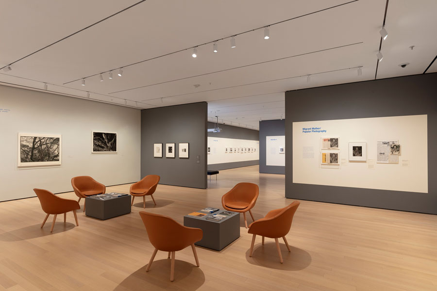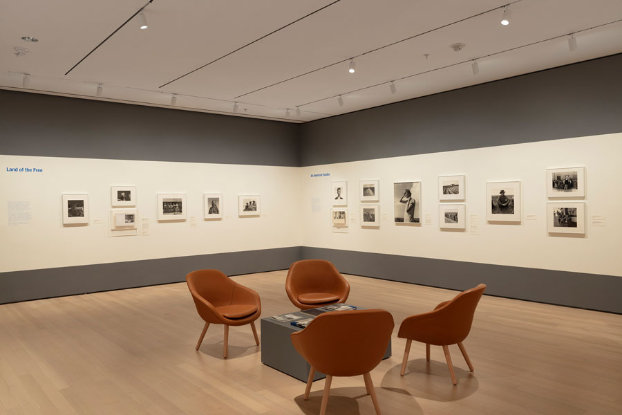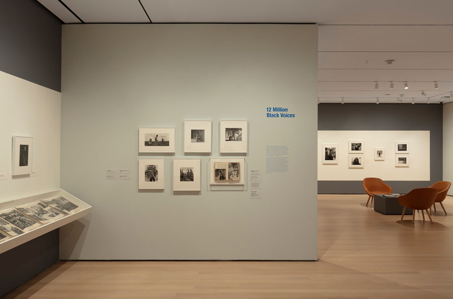 Tess Taylor, poetisa e convidada da curadora da exposição, Sarah Meister, conta-nos em áudio [2] sobre a crescente mudança da vida de migrantes, especialmente agricultores, à procura de uma vida melhor e a fazer face a enormes forças: a economia, as mudanças e crises climáticas. A poetisa conta que ‘’Lange iria falar com estas pessoas, ouvia o que elas tinham a dizer, voltava para trás do carro e escrevia’’. A fotógrafa não está só interessada em documentar, interessa-se sobretudo pela realidade social e pelas realidades isoladas, pela condição humana e as suas diferentes faces. Dorothea Lange encara o seu trabalho a partir do ‘’seu senso profundo de justiça social e o seu interesse em capturar o que nos torna humanos’’ [3]. Words & Pictures condensa o olhar nestas diferentes componentes visuais que enaltecem um tempo e um povo. O espaço parece criar-se em torno de conceitos de observação, leitura e aprendizagem. Como um labirinto de palavras e imagens, o espaço físico e expositivo recorda sobretudo, não só uma exposição mas uma biblioteca, um arquivo. Enquanto visitantes, não podemos fugir ao caráter histórico e pedagógico que esta exposição nos transmite. Todos os ensaios de Lange, as páginas de jornais sobre a actualidade e as condições do presente, todos os relatos e, claro, todas as fotografias, evocam um tempo e as suas expressões. Todos estes documentos permitem uma compreensão à realidade do mundo. Assim, a exposição cria-se tirando partido do potencial das paredes para exibição dos elementos iconológicos: as fotografias, documentos textuais, artigos. Por outro lado, o espaço físico e vazio da exposição permite a disposição de mesas e cadeiras onde o visitante pode emergir numa leitura de catálogos e livros inteiramente conectados com as temáticas e cronologias.