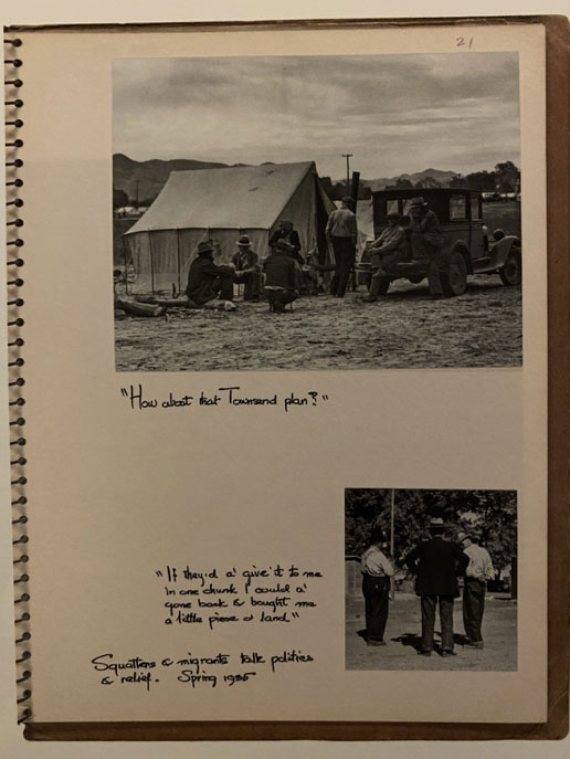 ‘’Social Erosion: shelterless families in carrot pullers camps” (1935) em Migration of Drought, p. 6.