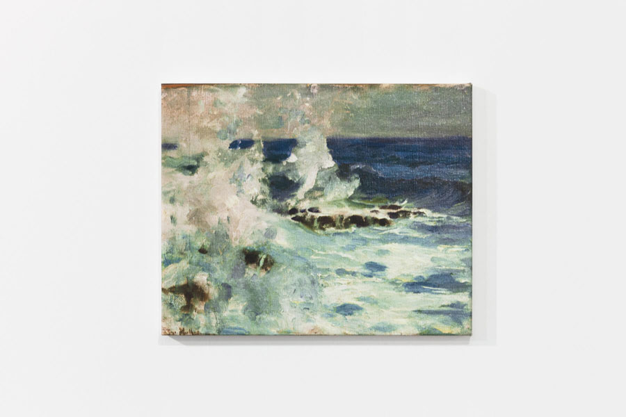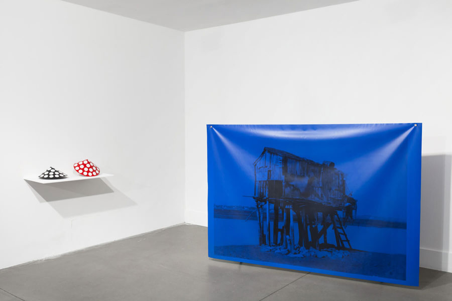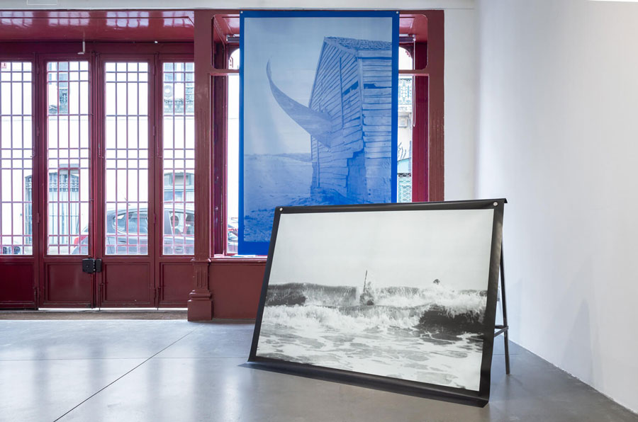 Galeria Boavista, após alguns passos do Tejo. Pouco destaque do edifício, portas de vermelho e vidro. Ainda há dúvidas: seria ali? A ferrugem comia a porta principal, criando o impasse entre a porta estar trancada, o lugar estar errado ou se eu estava agindo certo ao empurrar com força. Era o efeito do tempo que prendia aquela porta, aberta somente com ajuda da funcionária, que logo me oferece os mapas de sala e descreve brevemente o espaço, com dois andares, aquele e um filme a passar acima. Tudo por ali apresentado parecia repetir o gesto daquela porta: ações do tempo carcomendo, mastigando para dentro de um futuro maquínico toda uma tradição do passado. Obstáculos que são assim criados também lá se apresentam, figurados. Exatamente à frente da porta de entrada, um banner completamente azul. Sem importar o que ele poderia esconder, somos obstaculizados logo pelo plano monocromático aparentemente impresso em lona. Esse definitivamente não é dos materiais mais comuns às galerias, mas sim a peças publicitárias - e o lugar destas habitualmente é nas ruas. Tratar-se-ia de alguma aproximação aos ready-mades? O que o azul do banner, a primeira imagem, à frente, traria, como barreira e como significante naquele sistema? O cemitério de âncoras, e aquele azul publicitário, dá um sabor de coquetel preparado à beira mar, que se deixou salgar demasiado pela maresia. A começar pela nossa esquerda, mais dois cartazes: um maior e com tons do mesmo azul já visto; outro menor, em branco e preto. Estes, no entanto, não traziam somente uma cor, mas, assim como o banner pleno de azul, essas duas peças traziam a força de uma barragem intempestiva: em branco e preto, uma pequena embarcação tenta atravessar uma onda, que, contra ela, se esbate fortemente, deixando sobrar ao nosso olhar somente a ponta do pequenino barco pesqueiro; na impressão maior, sobre um banner em tons de azul, uma ponta que remete àquela do barco entre-ondas, atravessa, de modo que marca sua travessia arrebatadora, uma pequena casa, com referências às antigas casas de pescador - que o barco não consegue, apesar da fúria exposta pelo rompimento da parede, atravessar ao mar. Voltando às costas àqueles cartazes, deparamos um pequeno objeto ao chão, guardado por uma caixa de vidro: uma escultura feita em madeira e pedra - as duas pontas da madeira juntam-se em triângulo, remetendo à ponta das embarcações vistas, e a pedra aparece ali como forte impeditivo de mudança de situação, caso já flutuemos ao nível simbólico. Ao seu lado, uma escultura, toda em madeira, em que se apresenta somente a ponta da exposição. Temos um apontamento icónico da dificuldade do trabalho do pescador, no barco que enfrenta a onda. Uma significação indicial de que os pescadores ficaram presos às suas casas, sem mais poder exercer sua atividade, devido ao excesso de pesca a nível industrial. Temos o simbólico, ao ver a pedra, símbolo de aprisionamento, e o triângulo formado pelos dois pedaços de madeira que representam o barco tido na situação descrita. Devemos destacar que, principalmente esta última, a relação simbólica, depreende-se das relações icónicas entre esse elemento e os demais vistos: são sempre pontas e barreiras. Mas ainda fica a questão: porquê os banners? Quando vamos circundar a escultura do barco de madeira, de repente nos vemos ocupando o mesmo lugar que, nos outros objetos, ocuparam a pedra, a onda e a parede insistente da pequena casa. Desse ponto, entramos no jogo dos significantes. Percebemos que participamos de tudo aquilo, lembramos que aqueles banners que nos mostram ali as imagens de um mal da indústria - a mesma que faz propaganda em banners - são alguns dos materiais usados no dia-a-dia para nos vender peixes das grandes redes. Dessa posição, podemos ver a parte traseira do primeiro banner visto: de um lado, puro azul; do outro a impressão de uma grande rede: nós somos os peixes, atiramo-nos às redes usurpando o trabalho dos pescadores tradicionais? A exposição nos levou aos poucos a ocupar o lugar vazio do desejo e nos enxergar como parte daquele sistema totalmente inconsciente de consumo e multiplicação do capital por exploração de recursos finitos. A posição atrás daquele barco não é confortável. Algumas outras peças no andar nos mostram mais tradições que se rarefizeram em nome do que se chamou de progresso: fotos de roupas típicas das mulheres, chapéus em louça; mais dois banners, que trazem estranhamente a linguagem publicitária para o lugar que aponta os problemas advindos de irresponsabilidades dela, um retrata um trabalhador, outra, uma pequena casa sobre as águas, parecida com aquela perfurada pela embarcação. Nossa leitura nos impele a caminhar da esquerda para a direita - assim como nos empurra para esse sentido o azul bruto de um banner à frente (o que será que ele escondia?, essa curiosidade parece mais ameaçadora do que chamativa). Começamos pela esquerda da porta. Daí, podemos começar a considerar uma estrutura de linguagem que constrói esse primeiro andar da galeria. Duas imprevisões: primeira, dar de frente com uma estrutura armada à frente da porta que parece somente uma barreira para o que está atrás; depois muitos itens espalhados pelo espaço da galeria, de maneira não obviamente organizada; e ainda, quando vemos o banner menor à esquerda, um barco tenta ultrapassar uma barreira, abandonando-nos ao momento de máxima tensão, sem nos deixar saber o “happy end”, ou não daquela embarcação. Portanto: ao entrarmos na galeria, vemos obstáculos, sentimo-los, ao nosso próprio corpo (todo olhos) ali; ao passar pelas obras, revemos o obstacularizar, mas agora no nível do enunciado - e não do enunciador. Esse movimento, parece nos empatizar e nos transportar para dentro da tela: nós quem somos agora, aquele pescador. Podemos caminhar, e nos colocar atrás do barco, como se estivéssemos dentro 
