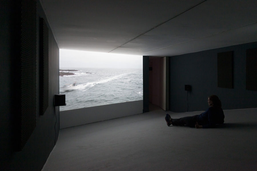 As Velhas Narrativas Vimos no andar de baixo que as narrativas e significados são construídos estruturalmente de maneira complexa, conectados uns aos outros, para inclusive nos posicionar - não numa simples posição piedosa, do colonizador, mas nos jogar no centro dos jogos de significantes construídos ali, como parte daquela máquina, ou presos àquela rede. Ao subir ao andar de cima, toda a situação aflitiva de participar de um jogo quase psicanalítico, deixando significantes rodarem livremente entre visitantes e artistas, mas sem pertencer nem a um nem a outro (um significante, para Lacan, devemos lembrar, somente existe em relação a outro significante, sem pertencer nem a um nem ao outro dentro do jogo estabelecido, flutuando, girando entre-dois e, por vezes, manifestando-se claramente em sintomas, seja em qual participante for), todo esse constructo estrutural se dilui em um piso confortável, acarpetado e inclinado, para deixar todos “mais à vontade” para ver o filme. Ainda em mente as complexas relações estruturais, constituídas, e o impacto de nos pregarem uma peça, jogar-nos no meio do jogo, o olhar, preparado pelas fortes estruturações e esperando-as recriadas ou transcriadas, infelizmente se decepciona. O filme faz como se ele quisesse ocupar a posição de um Em-Nome-do-Pai, explicando o “verdadeiro” significado do que era abordado abaixo. Consegue-se adotar uma estrutura simples, de lances entre imagens fixas em lugares de pouco movimento e pessoas envolvidas na atividade pesqueira com suas histórias pitorescamente contadas (porque como veremos a voz deles não é construída como uma voz de mestre, daquele que pode explicar a situação, de fato elucidar, mas do trabalhado, desumanizado por aquele que pretende ajudar e não lhe dá verdadeiro protagonismo) Há um tom explicativo, como se fôssemos crianças psicopatas que não pudessem sentir o que já era exprimido e construído habilmente no andar térreo, como se o trabalho no andar térreo já não fosse suficiente para criar, de maneira realmente nova, com trabalhos signicos, que envolvam ao máximo signos-novos, nossa empatia com uma situação a que nossas estruturas sociais submetem alguns (ora, não fomos nós mesmos as ruínas que sonham enquanto prendem a viagem ao mar, à volta do trabalho possível e sustentável???). O que vemos me encheu, em poucos minutos de filme, de estar experimentando a produção de alguém que tem um “potencial criativo” que não passa de certo bucolismo, realismo social engajado, sem grandes informações estruturais, em total contraste com o caráter minimalista apresentado abaixo. Um projeto fadado ao fracasso, em que podemos sentir o aroma, não do mar português com suas belíssimas luz e praias, mas sim de um mofo soviético, com suas imposições de produtos culturais que inovassem pouco, porque, para ele, parece-me, seria impossível o povo comer do seu “biscoito fino” (tomando para nós a provocação de Oswald de Andrade, que não se entregava jamais ao detrimento do desenvolvimento da linguagem estética em favor de causas e lutas, mas acreditava que ambos deveriam vir juntos.) Com esse passadismo ténue e pretensamente politizado, e que parece ser mais uma forma de exploração estrutural dos mais desamparados, para “galerizá-los”, é como se houvesse sempre um ecoar de “Eu te entendo...eu te entendo…Mas boa sorte aí, hein, irmão” do artista semi-assistencialista: não sabemos qual é o grau real, estrutural de desenvolvimento dos artistas-interlocutores. Mas podemos fazer uma marchinha carnavalesca, podemos, bradando a Internacional Comunista.