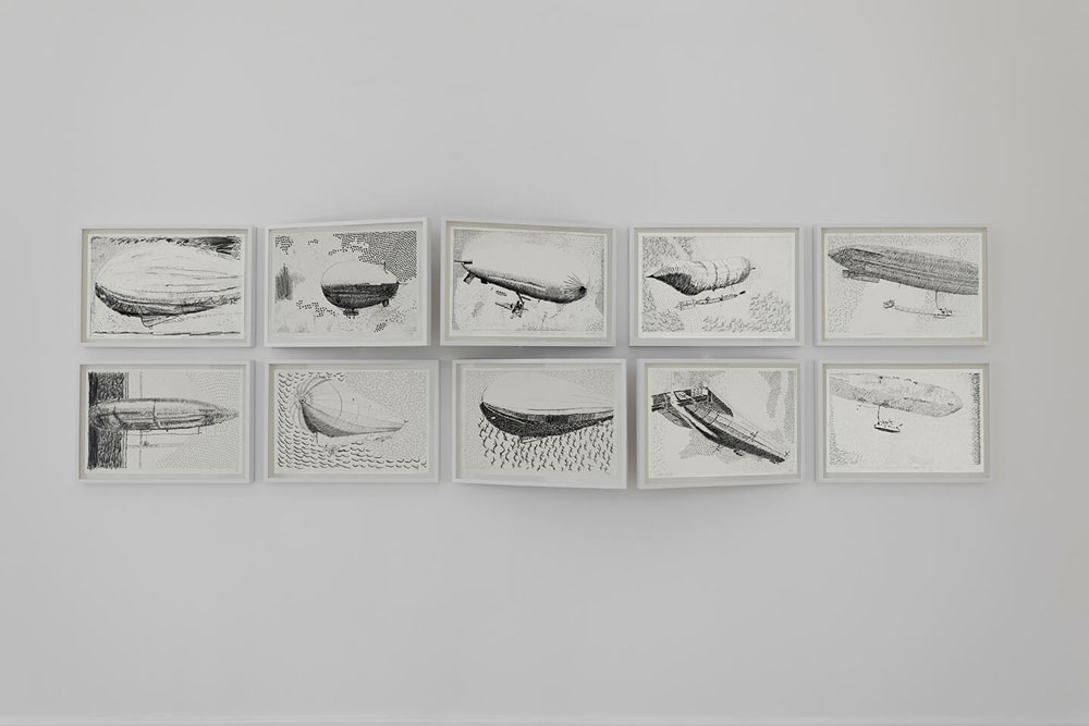 Em contrapartida, Alexandre Conefrey assume, nas pinturas de pequeno formato, delicadas pinceladas de cor, suspensas no ar, cujo gesto se intensifica com a ausência da cor, onde delineia o registo da passagem do Zepelim no espaço, através dos desenhos. Da escuridão e do vazio, da solidão e do silêncio, predomina no infinito a aspiração do ser humano para algo cada vez maior.