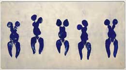 YVES KLEINYves Klein – Corps, couleur, immaterielCENTRE POMPIDOU Place Georges Pompidou 75191 Paris 05 OUT - 05 FEV 2007 Uma esponja cheia de céuAs esponjas são o animal mais voraz, podem absorver todo o azul do céu. Yves Klein, o artista que foi dono do céu conseguiu atingir o seu objectivo máximo, o vazio. A impregnação na matéria, nas obras de Klein provoca ao sair da exposição uma amnésia, o imaterial não permanece na memória, vive-se no momento. Tive a sorte de poder visitar a exposição “Yves Klein- Corps, couleur, immateriel” sozinha, sem público nem guardas-sala e foi esta experiência de contacto directo com as suas obras-matéria (pigmentos cromáticos, esponjas, folha de ouro) e obras-impressão (de corpos femininos e dos elementos físicos como o vento, o fogo) que me permitiu re-pensar a imaterialidade do seu corpus artístico. A crítica nos últimos 25 anos, vê predominante Klein como o criador do IKB (International Klein Bleu), como um pintor abstrato, com um eventual retorno ao figurativo primitivo nas suas “antropomorphies” e “cosmogonies”. Além de exaltar o misticismo na sua breve carreira (YK morre com 34 anos), Pierre Restany o teorizador do Nouveau Réalisme em França, na sua recente monografia sobre Klein “Le feu au cœur du vide” (1986, re-edição 2001, La Difference, Paris), reconduz a obra do artista à influência do ocultismo; e a exposição do Beaubourg desencadeou inúmeras novas publicações entre as quais, duas novas biografias e dois números hors-série das publicações Beaux-Arts e Art Press, dedicados a Klein. O IKB voltou à capa das revistas de arte francesas, nos seus números de Outubro. O rastilho que esta exposição (não retrospectiva) nos permite seguir é de ver Klein como um performer e o continuum existente entre a sua acção artística plástica, teatral, musical e mesmo política. A sua vida é orquestrada como uma obra total e cheia de ironia. As obras monocromáticas de Klein são um espaço aberto de cor, onde a possibilidade de evasão imaginativa ultrapassa a moldura formal da tela. Não são o campo formal de Malévitch. A sua sinfonia “Monoton-Silence” (1947-1961) além de ser uma performance, em si mesma, é a banda sonora das suas sessões de “antropomorphies” abertas ao público. A sua performance teatral faz-se no espaço vazio, é a prática de Peter Brooks avant la lettre. Ele afirma “Le corps seul vit, tout-puissant, et ne pense pas (…) je déteste l’obscurantisme soi-disant mystique” em “Le Dépassement de la problématique de l’art” 1959. A exposição é organizada de uma forma circular, na ampla galeria 1 do sexto piso; defronte a nós no início do percurso estão representados o azul, o ouro e o rosa e é com esta trilogia que a exposição se encerra; seguindo a máxima de Yves Klein, de que o artista é um personagem público: as obras são expostas paralelamente a uma parte biográfico-documental de fotografias, vídeos, cartas e registos áudio subtilmente acessíveis em dispositivos inseridos nos bancos destinados ao público. Klein nasceu a olhar para o céu e para o mar na praia, na cidade de Nice, em 1928; filho de artistas plásticos, fez a sua formação autodidacta pelas viagens que relizou: Irlanda, Itália, Espanha e Japão. É no Japão que conhece a arte marcial do Judo, na qual se torna um mestre e professor na Academia de Paris. Será também no Japão que as folhas de ouro impressas nos papéis dos mortos o impressionam. A impregnação no azul começa pelo globo-terrestre, visto por Gagarine na missão espacial de Abril de 1962, “A Terra é de um azul intenso e profundo”. Klein não acredita na conquista do espaço feita pelo Sputnik ou por outras naves espaciais mas pela impregnação física da sensibilidade do homem no espaço; escreve a Fidel Castro (1958) e ao presidente Eisenhower nos EUA (1958) entre outros para lhes comunicar a “Revolução azul”, o mundo azul. A meio do percurso surge a sala das esponjas, onde 7 esponjas são expostas em plintos como uma metáfora à cabeça dos visitantes impregnados de matéria. O Ouro, Klein expõe-no tal como ao pigmento azul e rosa sobre telas, em monocromias. Depois no percurso da exposição seguem-se os traçados do imediato, nas obras-impressão executadas com a intervenção do fogo ou do vento como em COD 10 “Vent Paris–Nice” (1960). Klein impregna de matéria o corpo das suas modelos para fazer os seus famosos “sudários”. A acção pictórica veste-se de corpo, a acção veste-se de matéria, ficam as marcas do vampiro. O fogo, decompõe-se nas três cores de Klein, e ele apercebe-se do facto em Krefeld na Alemanha, onde executa as suas telas sujeitas a combustão. A exposição termina com um ex-voto dedicado a Santa Rita de Cascia em Itália e com um túmulo em ouro, a obra “ Ci gît l’Espace” (Aqui jaz o espaço, 1960) realizada com folha de ouro, espoja impregnada de pigmento azul e rosas artificiais. O artista salta de encontro ao vazio onde levita. Ele não é como James Turrel, na definição de Georges Didi-Huberman “O homem que caminha na cor”, ele é o homem que entra dentro da cor. A performance, no entanto, vive-se no momento, deixa apenas marca impressa no suporte fotográfico (“Le Saut dans le vide”, Fontenay-aux-Roses, Outubro, 1960, fotografia de Harry Schunk) ou no vídeo ou no animal das suas esponjas. As esponjas espremidas voltam ao vazio inicial mas houve um momento em que eram todo o azul do mundo.