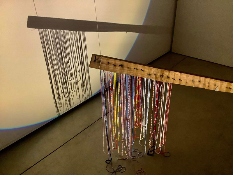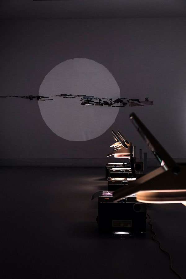 Algo terá ficado em reminiscência da exposição individual de 2017 também no espaço Mira alheava_o lugar dos afectos. Contudo, aí encontrávamos um espaço mais preenchido, com vídeo, instalação e um trabalho de luz minucioso, onde as sombras dos próprios espectadores contaminavam a obra. Essa ocupação do espaço talvez surja não só pela grande produção do artista, como da necessidade de mostrar a intensidade da vida em Nampula na actualidade. Existe um antes e um depois no projecto Alheava que altera significativamente a obra e o modo de a dar a ver após a viagem-regresso, com uma abertura que apela a todo o corpo, à vibração das cores, ao cheiro e a uma certa sensualidade. Um trabalho de luz e sombra, o contraste entre o brilho, o pôr-do-sol e o lusco-fusco. Vêem-se fotografias recortadas como fios que por vezes se tornam tridimensionais, que relembram alguns retratos de Esther Ferrer, como um alongamento do próprio corpo para além do limite fotográfico, criando uma nova totalidade, onde os interstícios sejam ausências, invisibilidades ou algo ainda por acontecer. O ano de 2017, no qual apresenta mais duas exposições individuais, que são exemplos do trabalho que deixa de ser tão hermético e abraça a organicidade, como a exposição alheava_a criação do mar, na Escola das Artes da Universidade Católica. Novamente os círculos de luz que não iluminam apenas, mas focam o nosso olhar em partes das instalações que por vezes se estendem para além dos mesmos - uma lua, um sol, um monóculo, alguém que espreita e recorta a realidade.
