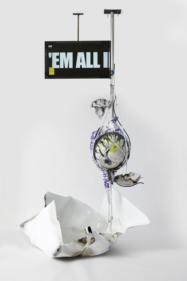 Materialidades (in)orgânicas O ato de falar, no espaço da cidade, permite definir um espaço em torno do corpo, em que as palavras se tornam um prolongamento deste. (Tavares, G. M., 2013, p.460) O interior expande-se para o exterior e o corpo, o organismo torna-se mundo. Por sua vez, o exterior concentra-se e perde dimensão e volumetria e entra, através da alimentação e respiração, no corpo. O mundo torna-se organismo. (Tavares, G. M., 2013, p.463) No espaço expositivo a matéria orgânica, que comporta a desfaçatez do perecível, mostra-se, ironicamente, em representações artificiais: mechas de cabelo sintético, flores de plástico de diferentes tamanhos e cores, e, ainda, bocas, dentes, línguas e narizes que aparecem estampados, em serigrafia, ou tridimensionais, em plástico. Disse o escritor Gonçalo M. Tavares (2013, p.460) que há na boca uma concentração invulgar de actos fundamentais. Sabemos da palavra dita e desdita, alegre, triste, de escárnio. As onomatopeias. A respiração que é fulcral para a vida. Os alimentos saboreados e mastigados. O beijo sentido, de prazer, de saudade, enternecido. Pensar e falar a cenografia da cidade é perceber a sua composição por camadas de matérias, um palimpsesto de criação coletiva e individual que pode evidenciar fatores biológicos, sociais, culturais, políticos, geográficos, psicológicos, e outros, que numa amálgama são duplamente contextualizados e descontextualizados, lógicos e surreais. Tal, direciona-nos para a filosofia do sistema vital do neomaterialismo que não descartando a linguagem, a significação ou a construção de sentido, enfatiza a interrelação dinâmica, as transposições e os devires entre entidades humanas e os designados outros, quer sejam geológicos, zoológicos, ecológicos ou tecnológicos (aparelhos e artefactos). Respeitando as diferenças de intensidades, propriedades e localizações (heterogénese diferencial das matérias) há um fluxo de movimento mútuo, uma inter-relacionalidade, que informa e transforma os intervenientes, que insta novos potenciais e capacidades, e que na sua amplificação e dinamismo não se prende com polarizações binárias como matéria/mente e natureza/cultura, perspetivando um continuum natureza-cultura. (Braidotti, R., 2022, pp 1-6) Esta interconexão, num todo orgânico-artificial de linguagem e matérias, está patente na obra de David Douard quando as obras que se apresentam no espaço expositivo comportam, de uma forma geral, uma coerência em que são comuns: materiais diversos como o plástico, o gesso, o papel, os tecidos, o metal, o alumínio, o vidro, as tintas industriais e a madeira; e elementos iconográficos, que se repetem, como cortinas, grades, bocas, dentes, línguas, postes, estruturas indecifráveis amolgadas, mechas de cabelo sintético, correntes, cabos, esferas ou semiesferas, fechos éclair, versos escritos. Entende-se, desta forma, que estas obras artísticas compostas por fragmentos, numa aparente realidade dissonante e fractal, ressoam numa consonância estética, o que não deixa de ser paradoxo, e começam por ser concebidas, segundo o próprio artista, de forma imprevisível, sem uma lógica estrita, passando a serem construídas quando um material encontra/estrutura um pensamento, quando a arte desenvolve uma forma de linguagem que, com o decorrer do tempo, transmite uma espécie de mensagem. (Douard, D., 2020)