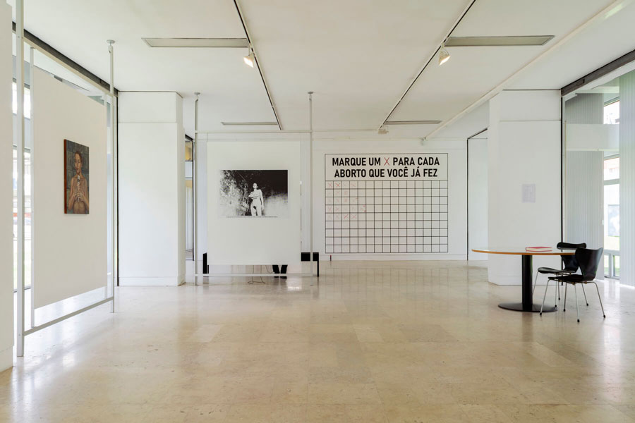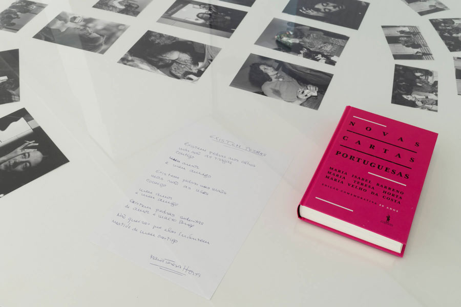 No filme Les Trois Portugaises, que a cineasta Delphine Seyrig realizou em colaboração com Carole Roussopoulos e Ioana Wieder, há um registo em live-cam da leitura-espetáculo «La nuit des femmes», conduzida como uma manifestação nocturna diante da catedral de Notre Dame, e que fez parte das acções de apoio ao livro Novas Cartas Portuguesas, levadas a cabo em Paris entre 1973 e 1974. E ainda de apoio às autoras, Maria Isabel Barreno, Maria Teresa Horta e Maria Velho da Costa, no contexto do processo judicial em que a obra as lançou. Num close-up que não lhe concede fuga, Seyrig dá voz, ora pungida ora panfletária, a excertos da tradução francesa de Novas Cartas Portuguesas. Na audiência, que nunca é filmada, há um entusiasmo indomável. A dado instante, Seyrig passa à leitura de um excerto que começa assim «et l’érotisme, et l’érotisme…». A audiência incendeia-se e dá-se a ouvir exultante. Predominam a gargalhada e o riso, e a Seyrig não é possível prosseguir. Isto até ao instante em que alguém pede silêncio com um «s’il vous plaît, c’est pas le thêatre.» Seyrig, a actriz, penalizada com o que ouviu, retoma. Juntamente com uma série de manuscritos com poemas de Maria Teresa Horta, o filme Les Trois Portugaises é, segundo Tobi Maier (curadoria), a peça de abertura da exposição Novas Novas Cartas Portuguesas [NNCP]. E a partir daquela passagem não cairá mal dizer que é também a que a encerra. Ou pelo menos a que lhe confere cúmulo como objecto maior, a pedir ser visto, revisto, vivido e revivido. É que é ainda naquela exacta passagem que está em jogo aquilo que dá razão de ser a esta exposição. Precisamente o facto, a contrapelo com a deixa intempestiva que foi atirada à cara de Seyrig, de ela – a exposição – ser como “o teatro”. Como quem diz, estar do lado da grande arte. De resto, como Novas Cartas Portuguesas o estão do lado da poesia e da representação. É daqui, também, que haverá que partir para condescender com os momentos menos conseguidos de Novas Novas Cartas Portuguesas. No caso: sempre que o que está exposto pretende recriar um fio de reconstituição histórica, ou de art-verité, o que a exposição tem para mostrar não traz frescura, e talvez nem mesmo valor documental. Está neste pé o conjunto de fotografias do processo de julgamento das “Três Marias”, por Jorge da Silva Horta, colocadas numa mesa, debaixo de um tampo de vidro, no que resulta mais como memorial um tanto batido, ao jeito de café-concerto, do que como reposição cenográfica de um assunto de café-litteraire. E os poemas manuscritos de Maria Teresa Horta em folhas envitrinadas não alimentam, enquanto peças de uma exposição, mais do que um interesse escolar. Com os cinquenta anos que leva, e que esta exposição assinala, o “caso Novas Cartas Portuguesas” está dado a muitas flutuações. Sobretudo no que se refere ao modo como foi recortado, dizendo de forma muito sumária, pelos vários feminismos e pelas problemáticas de género. Eis o que tornou a obra combustível para apropriações dissonantes e nem sempre alinhadas por igual sentido doutrinário. Não se tratará apenas de mera curiosidade histórica, enquanto espelho de uma datação, ou de uma marca de prazo de validade, mas cumpre ouvir Maria Isabel Barreno, numa entrevista em Les Trois Portugaises, articular, sobre o que escreveu, expressões amplamente criticadas, já ao tempo, pelas diferentes sensibilidades feministas, tais como “condição feminina” e “emancipação da mulher”. Na verdade, o filme «Ti-Grace Atkinson – Uma biografia de ideias» (2018) de Rita Moreira, também exibido em Novas Novas Cartas Portuguesas, ao traçar com denodo um retrato obrigatório da feminista radical Ti-Grace Atkinson, momento altíssimo desta exposição, denuncia, quase com um toque higienizador, o mal-de-vivre em que este debate foi aprisionado à conta de bastos equívocos, não poucos deles ofensivos. Estará nessa condição a retórica essencialista a respeito do feminino, a que as expressões artísticas foram muito gratas, mormente as que, nas pós-vanguardas, se reivindicaram do camp, do vamp e do glamour. Mas mais aflitiva ainda é a falácia da unidade entre desejo, identidade, sexualidade e genitalidade (cf. Butler, 2017, p.105), que tem legado à arte, quando ela é por aqui convocada, uma simbólica e uma iconografia pobres, porque exaustas. Veja-se, a este título, toda a obra de pintura de Francisca Sousa exposta em NNCP, e o salpicada que anda por uma estereotipagem de órgãos genitais de que não chega a retirar-se outra leitura que não folclórica, mesmo quando a artista revisita o motivo nobre da natureza morta (excepção feita para o muito interpelante Aula de costura [2017]). Esta genitalidade empedernida é o que marca ainda a glória daquela que quer ser a peça-choque desta exposição, a instalação A Transformação do Mundo (2022) de Aura, em colaboração com Aurora Pinto. Aqui, o efeito verité vem carregado com uma demagogia espacial (imersão, penetração) e de um facilitismo visual (ampliação, clinical-shot), que o pouco que é dado observar-se é o modo como a execução da peça poderia ter sido muito mais sagaz. O facto é que aquilo que a peça de Aura tem a devolver do sopro poético de que Novas Cartas Portuguesas estão repassadas é tangencial. Fará talvez corpo com elas numa dimensão estimável, mas insuficiente para alcandorar-se a ser mais do que uma peça proto-documental, e que é: quer ir à luta. Daqui que dizer, como se lê na folha da exposição, que Novas Novas Cartas Portuguesas «manifesta a urgência de uma renovação» talvez falhe, em parte, aquilo que há a celebrar e a recolher na obra das «Três Marias». Isto é, o sentido de que a «causa» da obra, pela ancoragem na tradição da grande criação literária, não é renovável, mas quando muito reacendível. Um dos ‘motivos’