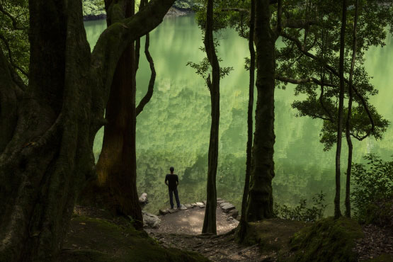 Banhamo-nos assim durante a exposição em sombras e reflexos, em brilhos e rupturas, percorrendo as fronteiras entre líquido e sólido, entre visível e escondido, entre explícito e misterioso. Confesso ter gostado menos das raras imagens mais anedóticas onde o humano aparece, as mãos estendidas para o céu ou uma cena verde à Friedrich. Mas, já há oito anos, eu privilegiei no seu trabalho o facto deste se encontrar “algures entre o real e a sua representação, ou melhor para além da representação”. A exposição foi apresentada anteriormente no Havre e à Kerguéhennec. Belo catálogo (recebido da assessoria de imprensa): numa caixa, um livro que contém imagens de página inteira, com um índice separado contendo toda a série com títulos e dimensões, e um caderno trilíngue (francês, português, inglês) com um texto mais “natureza” de Léa Bismuth e um texto mais “cultura” da comissária portuguesa Emília Tavares.