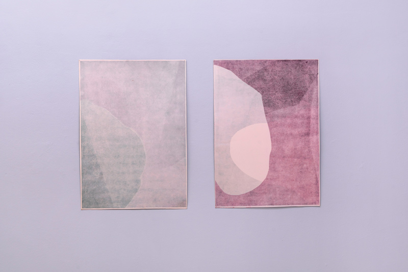 A propósito de avant et à démesure, um conjunto de monotipias sobre papel, e portanto uma vez mais um dentro que é um fora e vice-versa; e, ainda no jogo de polaridades suspensas, que não apenas pela linguagem, a Juliana faz-me reparar nas pequenas pedras-pomes que tencionam as pétalas — assim lhe chamo, ou chamas . São um símbolo desse lugar, nas profundezas, de onde por-ventura chegam “forças para a canção de um poeta vindouro”, como refere Rilke. Certo é, como mo recorda, que esta matéria, a primeira a emergir do interior da Terra, parece perder no seu trajeto todo o seu peso. E, recordo, o seu uso corrente é, como os lápis de cor de Fulgor, a fricção — com a fricção, a acelaração do aconte-Ser do fogo, esse que não nos pode ser roubado, se não por distração, pois é excesso de dom; desdobramento pelo desejo do Ser. Os deuses das grandes produções, porém, não amam…no dizer de Carl Jung, ‘onde há amor não existe necessidade de poder’, e vice-versa. Sobre fricção, diz-nos ainda Gaston Bachelard: