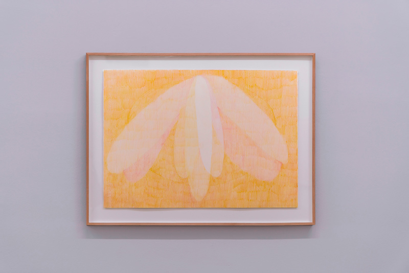 O vestígio sonoro deixado pela palavra citada lusco, faz-me regressar aos moluscos, e ao acontecer diáfano das suas habitações. No poema, Manuel Bandeira refere porém: “Cecília, és libérrima e exacta / Como a concha / Mas a concha é excessiva matéria / E a matéria mata”. Sinto que a luz diáfana dos desenhos da Juliana chega-nos, por um lado, dessa libertação de matéria; o traço do lápis de cor deixa um rastro de pequenas linhas paralelas, que por sua vez formam faixas horizontais. Como se se tratasse, respetivamente, da contagem dos dias e meses feita por um prisioneiro, porém arriscando simultaneamente nessa contagem escavar a parede, para da matéria se libertar — Por um excesso de dom, i.e., pela via da abundância e não da escassez, a falta de liberdade do prisioneiro. Por outro lado, como na prisão referida por Rilke, a Juliana mostra-nos — e sem qualquer exibicionismo — como é artista o bastante para convocar essa “régia riqueza” que é a infância. Que diremos a isto, diante de tantas propostas de grandiosidade; de tamanha desproporção entre produção, meios e mensagem, onde a elegância, que contém em si mesma a possibilidade acolhimento, se confunde inúmeras vezes com arrogância, exibicionismo e uma exclusividade que apenas exclui, i.e., que nos propõe ficarmos fora da nossa própria casa? Reler as Cartas de Rilke — “Ah…sim, já li há muito” — dir-se-á — é preciso. E que formas fazem a sua aparição através destes simples e silenciosos desenhos e monotipias? Uma flor, uma chama, um pássaro, uma vulva, um falo, um seio…E até uma concha e/ou asa de abelha, como no poema de Manuel Bandeira. Será? Sim, na medida de uma “eterna volúpia” por todos os seres participada. Detenhamo-nos nas seguintes palavras de Rilke, na sua quarta carta dirigida a Franz Xaver Kappus: