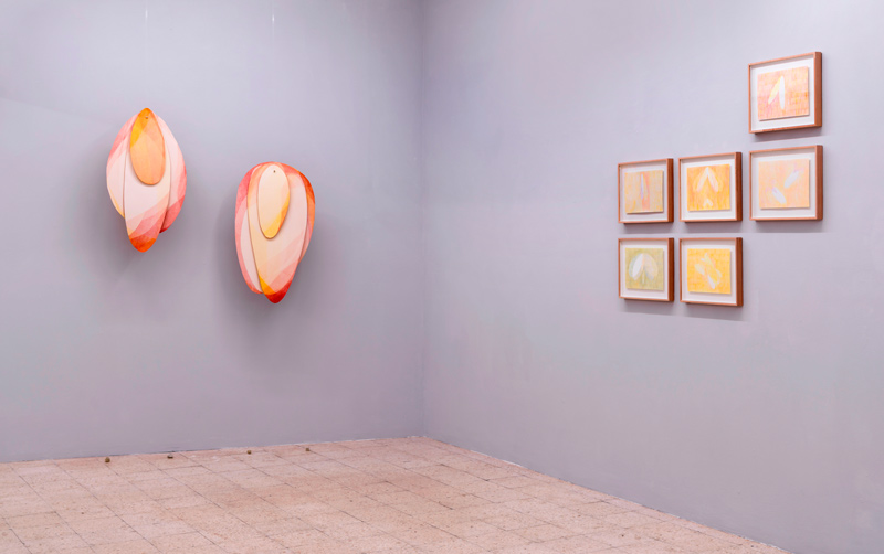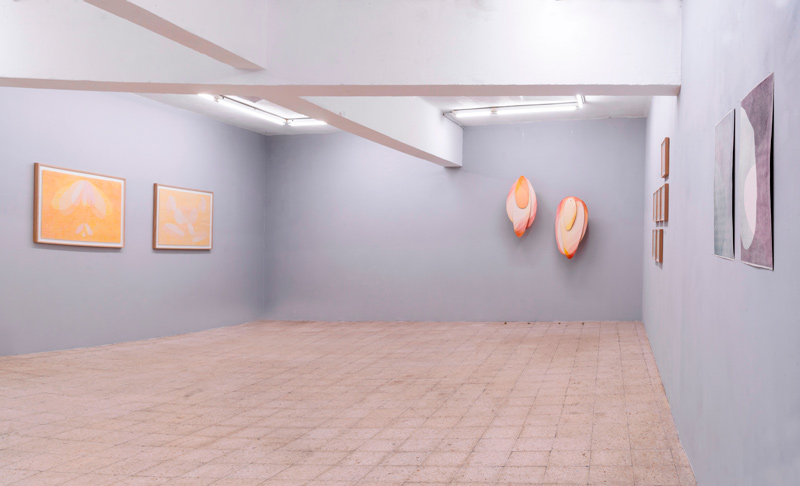Primeiro é o som — antes mesmo da cor. O som confirma de olhos fechados a existência deste espaço. Espaço Outro, para o qual as pálpebras se abrem como pétalas — mundo inteiro e interior. É agora a sua textura, o teu toque; o toque do lápis de cor, corpo sobre o papel — pele outra. Empresta-lhe as tonalidades aveludadas das pálpebras fechadas, abertas para o centro da flor; de tudo — Vemos porque o centro é polinucleado; habitamos o multiverso. E, por isso, há sempre quem nos veja; quem nos pressione [1] e pressinta. O som é escavação-fricção; do lápis no interior da concha ao encontro da sua exterioridade. “O espaço habitado transcende o espaço geométrico” [2] — Habitar é, enquanto experiência, sinónimo de Ser, e o preto de outrora [3] uma semente no interior da flor do fogo, cujas pétalas são todas as cores. A semente germinou fulgurantemente e a Juliana mostra-nos em Diáfano as suas verdadeiras cores. Não é um trabalho [4] é um labor no interior da concha. E o labor interior é o derradeiro labor da liberdade — o de tornar-se si mesmo. Sabem-no bem alguns moluscos; para tornar claro o seu interior, inventaram véus de nácar, diáfanos — trans-lúcidos. É, portanto, o labor da maturidade; a criação a partir de materiais contrários, ou das próprias contrariedades da vida. Numa partilha anterior a esta exposição, e com ela tornada pública, a Juliana falou-me de um decisivo porém pontual retorno à sua casa; a da família de origem no Brasil, em particular, a desorientação sentida no seu quarto, desta feita reconfigurado e ao qual fora atribuída uma nova função. É neste mesmo quarto, e por-ventura em virtude de se ter sentido aprisionada, que inicia uma nova série de desenhos a lápis de cor: Fulgor. Lembro-me por isso das seguintes palavras de Gaston Bachelard, em A Psicanálise do Fogo: “O fogo e o calor fornecem meios de explicação nos mais diversos campos, pois facultam-nos o ensejo de recordar coisas imorredouras, experiências pessoais simples e decisivas.” [5] Os lápis de cor aconteceram-lhe como o material do seu Possível. O seu Fulgor é, neste sentido, frugal. Refiro-me a essa frugalidade — ou até mesmo elegância — que decorre de uma privação de meios tornada escolha, via pela qual se redescobre o essencial. E, no essencial, o arrebatamento da e-terna luz diáfana — a luz do autoacolhimento, da mais profunda intimidade desdobrada em cada olhar que se dá a partir desse mesmo lugar íntimo, o do habitar, onde reverbera o Ser. Esta não é, por isso, uma luz direta; atente-se agora às seguintes palavras da curadora Andreia César: " [as obras de] Juliana Matsumura propõem o despertar de um eco sensível no nosso corpo, quente, resplandecente e expansivo, que neste seu propagar do fora para dentro e do dentro para fora, devolve luz ao universo". Por razões excêntricas ao texto, pelo que poupo o leitor de explicações que não as que possam contribuir para o seu sentido, encontro-me no momento em que o escrevo a reler, pela terceira vez, Cartas a um Jovem Poeta, de Rainer Maria Rilke. Leio porém uma edição de 1961 [6], com prefácio da poeta brasileira Cecília Meireles. No decurso da leitura, uso um motor de busca da internet para procurar informação complementar sobre aquela edição e o algoritmo, porque já havia procurado mais informação sobre a exposição Diáfano, conduz-me até ao poema de Manuel Bandeira, dito de Improviso, dedicado a Cecília Meireles — “Cecília, és como ar, diáfana”. O poema e as Cartas, numa constelação favorecida pelo algoritmo, todavia incomputável, porque da ordem do Ser, tratam agora de me informar um pouco mais sobre aquilo que no labor artístico da Juliana é, também, ressonante em mim. Logo na primeira carta, Rilke exorta o jovem poeta a ser simples, a fazer do dom do quotidiano a sua matéria-prima, “a relatar com íntima e humilde sinceridade”, utilizando para tal “as imagens dos seus sonhos e os objetos das suas lembranças”. [7] E, adverte: