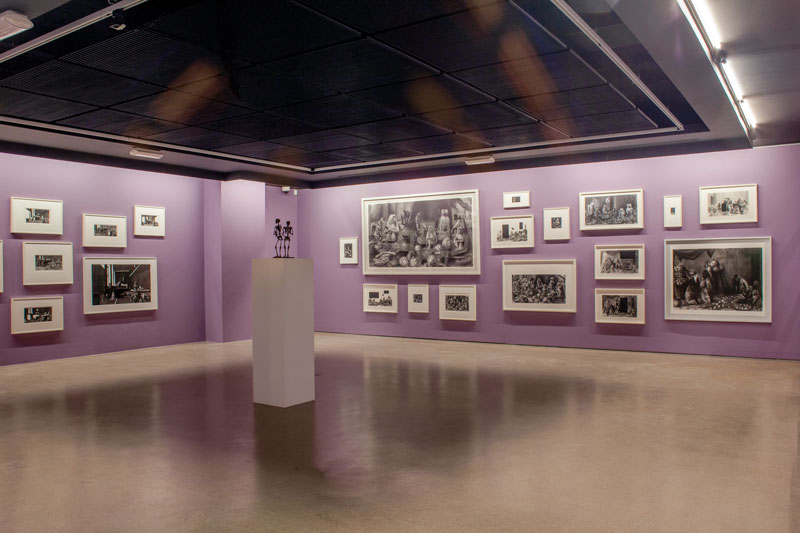 O espectador, suspenso por sinais distribuídos no espaço, depara-se com esqueletos humanos e não humanos, sátiras e delírios humanos. Sinais dos quais exprimem a ameaça e a ruína da constante da destruição, onde se desagrega a fragilidade da condição humana e do outro mundo, a da natureza. Numa amarga sensação de sátira e da alienação humana, o artista cria a perturbação no espaço. Num diálogo que ressoa a um monólogo absurdo, lembra-nos a “Dias Felizes” (1960) de Samuel Beckett. Sentimos um estremecer de uma “não-comunicação” instigada por uma era esquizofrénica. A obra de Miguel Branco vibra num tom irónico à barbárie humana. Acorda, assim, o público de uma espécie de anestesia, trepidando crenças fundadas em alicerces cegos e vazios, providos de falsos valores e carregados de loucura e nonsense.