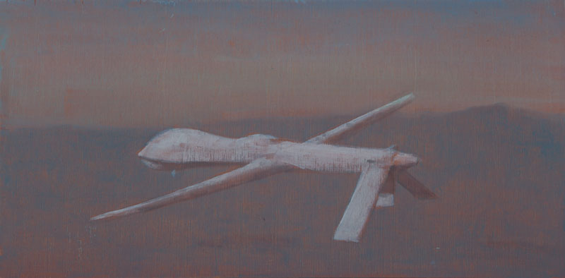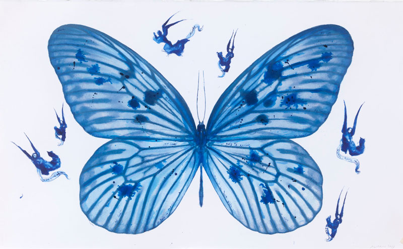 Através de devaneios, percecionamos uma outra visão, uma série de pequenas pinturas repletas de submarinos nucleares, drones e máquinas de vigilância, o espectador é confrontado com o desconforto do mundo atual, cujo olhar aponta para vestígios de imagens, estilhaçando o silêncio através de uma aparente divergência discursos estéticos numa intuita retórica de sinais de ruína. Este entrelaçamento de discursos sobre a condição humana numa era tecno-digital, em detrimento do mundo natural, o artista apresenta formas alegóricas conceptuais, através de uma série de borboletas azuis intituladas de Atlas. Elas não se apresentam como fragmentos de um atlas geográfico nem a uma alusão a lugares planetários, mas estranhamente a uma coleção de diversas borboletas azuis, cuja repetição difere na forma, no tamanho e em detalhes, emanando luz e transparência. Numa vertigem alegórica à tragédia, ou “a monstros prodigiosos, anjos, (...) máquinas de guerra, animais” (Almeida [2023]), contemplamos o sublime.