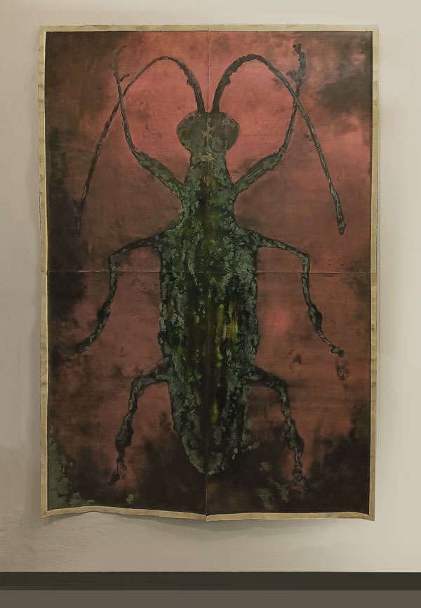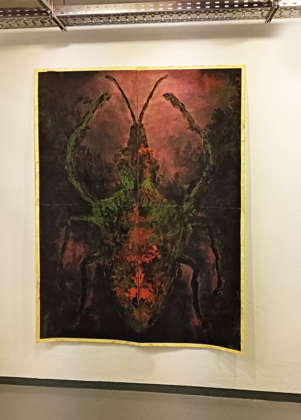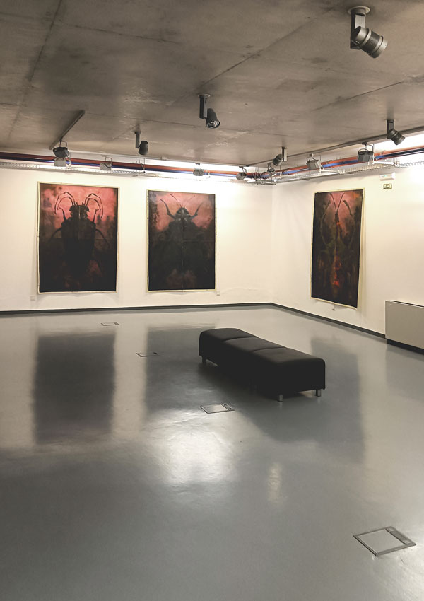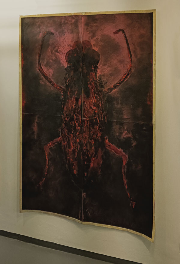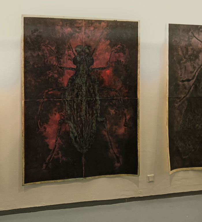 Oito bichos de proporções humanas, sem morfologia semelhante a nenhum inseto do mundo natural, mas estranhamente próximos de muitos seres que habitam o real, vivem por estes dias suspensos nas paredes brancas do Centro Cultural Bom Sucesso. Ao entrarem no edifício projetado pelo arquiteto Miguel Arruda, alguns visitantes irão recordar, numa primeira observação, os animais que lhes causavam repulsa ou atração, na infância, como os escaravelhos ou os grilos que se fechava numa caixa de fósforos ou numa gaiola para ouvir o seu cantar. Na contemplação panorâmica dos desenhos, talvez alguns não resistam a convocar A Metamorfose (1915), de Franz Kafka, e identificar, nas criaturas bidimensionais, a metáfora da transformação humana em inseto. Os de memória mais prodigiosa lembrar-se-ão de Jácome, “um inventor de coisas impossíveis: tinta invisível, formigas mecânicas, pássaros a vapor, sapatos voadores, aparelhos de produzir espirros…” (2000: 8) e serão tentados a comparar António Faria com o protagonista do conto “Estranhões, Bizarrocos e outros seres sem exemplo”, de José Eduardo Agualusa. O que se observa e aprecia é sempre um cruzamento entre a vontade do artista e as múltiplas leituras de quem interpreta com base na sua própria experiência e referências. A obra de arte será sempre, citando Umberto Eco, aberta. No texto da folha de sala, a curadora Carla Carbone convoca o Livro dos Seres Imagináveis, de Jorge Luís Borges, para conceptualizar a experiência da descoberta da exposição As Vizinhas, “o jardim povoado de criaturas fantásticas e intrigantes”: “Por um lado, alarma-nos, com a estranheza dos insectos lívidos que evoca, por outro, atrai-nos pela robustez e vigor que sugere. Remete-nos para o fascínio das coisas da natureza e para a variante assombrosa e inquietante do reino dos animais, também presentificada nas antigas Wanderkammer, ou gabinetes de curiosidades.”