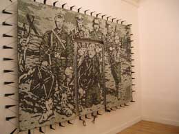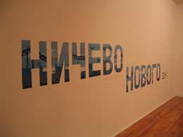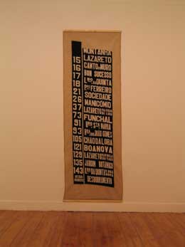 RIGO 23Nada de Novo / Swim AgainZDB - GALERIA ZÉ DOS BOIS Rua da Barroca, 59 1200-049 Lisboa 13 OUT - 27 JAN 2007 Num dia do ano de 1996, enquanto preparava uma exposição na extinta Galeria Graça Fonseca, Rigo, Ricardo Gouveia (n.1966, Madeira), atrasou-se a chegar ao espaço da Rua da Emenda em Lisboa para abrir a porta aos calceteiros que tinha escolhido usar para cobrirem o chão da galeria com um desenho seu, em tÃpica calçada portuguesa. Enquanto subia a rua, Rigo ouvia o barulho do martelar na pedra. Quando chegou, um dos calceteiros tinha passado o tempo de espera em frente à porta a fazer, num cubo de pedra de calçada, a forma de um coração, que ofereceu ao artista. Como outros acontecimentos da sua vida este também exemplifica a forma e projecto de vida deste artista madeirense mas que vive e trabalha na cidade de São Francisco, Califórnia, há muitos anos. Esta história foi contada pelo próprio artista que ainda guarda o coração feito em pedra preta de calçada. “Nada de Novo / Swim Again†é a apresentação em Lisboa, na galeria Zé dos Bois, de uma exposição que reúne grande parte do trabalho realizado por Rigo desde o Ãnicio dos anos 80. “Peões e Passadeiras, Jam Sessions: Rigo 84 – 23†foi comissariada por Manray Hsu para o Centro das Artes Casa das Mudas, na Madeira (Fevereiro a Junho de 2006). Mas a importância do contexto em que o seu trabalho é apresentado é de tal maneira essencial para o artista e nunca passÃvel de separação da sua maneira de trabalhar que Rigo teria necessariamente de criar uma “outra†exposição para o espaço da galeria Zé dos Bois, um espaço expositivo que conhece desde há muito anos. “Nada de Novo / Swim Again†é comissariada por Manray Hsu e Natxo Checa o director da ZDB com quem Rigo já trabalhou no passado, por exemplo na apresentação de “Carro do Sabão Azul†na galeria em 1998. Em Lisboa, Rigo aproveitou não só todo o espaço da galeria Zé dos Bois como também fez quatro intervenções no espaço urbano. Duas delas de carácter efémero. Uma é o Museu do Triciclo, contentor instalado na Praça do Comércio com imagens e uma colecção de triciclos alterados. Este museu criado pelo autor vai aumentando à medida que é instalado em diferentes locais, com novos velocÃpedes adquiridos nos locais da apresentação (o Museu foi apresentado no âmbito da Bienal LuzBoa entre 25 de Setembro e 19 de Novembro de 2006). Outra é o Museu Taté Wikikuwa, um outro museu dedicado à mostra do trabalho artÃstico de Leonard Peltier, um prisioneiro polÃtico dos Estados Unidos. Este museu já foi apresentado em São Francisco, Reino Unido e Chile e é constituÃdo por uma série de trabalhos a óleo, pintados atrás das grades pelo defensor dos direitos das comunidades Ãndias indÃgenas do norte da América. Em Outubro, este museu esteve no Grémio Lisbonense, anunciado com enormes letras no seu exterior, e agora habita uma das salas da ZDB até ao final da exposição. Os “museus†impulsionados por Rigo têm como objectivo não só o alertar o público para determinadas causas mas também o questionar das definições de museu nos nossos dias, como se, para o artista, a constante utilização da palavra museu significasse a perda da carga que esta palavra acarreta. Muitas vezes estes museus são instalados dentro de outros museus. As duas outras intervenções no espaço urbano são de carácter permanente: “Europa-Latina†é uma pintura mural na Avenida 24 de Julho junto à Casa da América-Latina e “ZDB Forever†é uma instalação em calçada portuguesa com desenho do autor que envolve o edifÃcio da galeria ocupando parte da Rua da Barroca, Travessa dos Fiéis de Deus e Rua da Atalaia - como homenagem à galeria lisboeta. Mas a par de todos estes trabalhos pela cidade, o espaço expositivo da ZDB está quase na sua totalidade ocupado pelo artista – obras de vários perÃodos da sua carreira alimentados pelo seu carácter interessado e dedicado a causas polÃticas e sociais intrinsecamente ligados à sua maneira de viver, à s suas viagens e processos de trabalho. Nas escadarias de pedra que nos levam aos dois andares da exposição e à s várias salas estão expostos os trabalhos que de alguma maneira são as suas obras mais visÃveis e conhecidas – intervenções no espaço urbano da cidade de São Francisco onde o artista utiliza sinais gráficos com palavras – uma palavra utilizada e escolhida para o local e contexto onde é colocada. Rigo apresenta fotografias destas obras e vÃdeos em pequenos monitores que contam a história dessa mesma intervenção no espaço, por exemplo “Extinctâ€, um mural, parte integrante do projecto “Art in the Urban Landscapeâ€, pintado pela primeira vez por trás de uma gasolineira Shell em São Francisco e que mais tarde os proprietários do edifÃcio ao verem o potencial publicitário e lucrativo da ideia ameaçaram retirar. O artista decidiu recorrer à protecção legal para obras de arte e os proprietários acabaram por ter que financiar um mural igual numa outra parede do mesmo edifÃcio. Ainda hoje, a parede original continua branca e uma gasolineira permanece nas imediações. No meio de obras quase “históricas†da carreira de Rigo – os seus grandes murais - setas que apontam para “SKY†e “CARSâ€, “TRUTH†ou “ONE TREEâ€, o autor contamina a sua própria exposição com novos trabalhos colocados lado a lado. Algumas peças ainda realizadas em tempo de escola, fotografias do artista muito jovem enquanto fazia uma performance com um amigo em Porto Salvo (pela primeira vez apresentadas aqui) ao lado de um “remake†de uma exposição de 1986 no Espaço Poligrupo Renascença, em Lisboa ou da série das águias de 1994 - pinturas a preto e branco que reproduzem sinais de direcção, como instruções e que o autor vê como águias – inscrição nas paredes da galeria a lápis – “Estas pinturas são águi