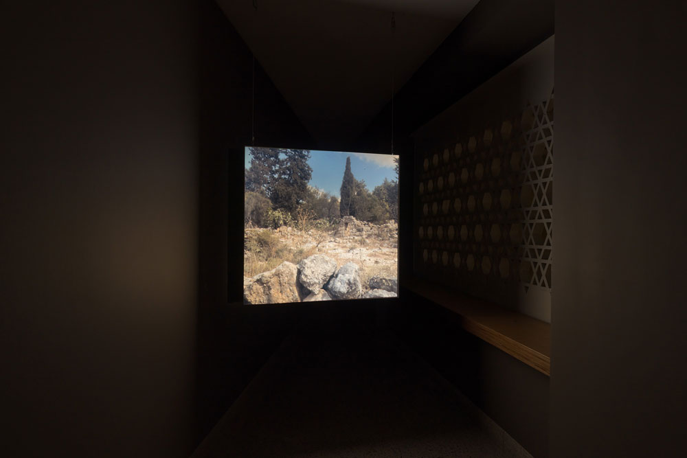 A escritora Adania Shibli dedicou o ensaio A Lesson in the Nature of Resistance (2025) ao pequeno arbusto de alcaparras do jardim dos seus pais, onde passou a infância. O texto breve termina com a imagem de um galho deste teimoso vegetal brotando das frestas da parede do depósito que foi construído no lugar onde existia, mais de trinta anos antes. A insistência vital da planta nos lembra que os seres não-humanos atuam ininterruptamente sobre os espaços e os sujeitos. Entretanto, é comum nos esquecermos deste fato evidente. Assim como o mundo geo-biológico é sempre histórico, a história tem caráter físico – é, também, topografia, paisagem e bio ou cosmogênese: agência em forma material. A exposição All That Remains [2], de Inas Halabi (Palestina, 1988), patente na galeria La Loge, em Bruxelas, é construída precisamente a partir dessa premissa. O título faz referência ao livro homônimo de Walid Khalidi, que leva, ainda, o subtítulo The Palestinian Villages Occupied and Depopulated by Israel in 1948. No início da obra, o autor declara o contexto do seu estudo: o texto convoca a memória da destruição e do apagamento físico dos vilarejos palestinos obliterados em 1948 durante o Nakba – a “catástrofe”, o êxodo forçado de cerca de 750 mil palestinos como consequência do projeto colonialista-sionista de instauração do Estado de Israel – revelando como a paisagem atual ainda guarda vestígios silenciosos desse mundo desaparecido. Khalidi evoca, ainda, a presença de oliveiras e outras árvores frutíferas, cactos e plantas que sobreviveram ou cresceram descontroladamente nessas regiões, declarando que o livro – um esforço impressionante de catalogação com informações historiográficas detalhadas relativas a centenas de cidades – deve ser compreendido como uma espécie de “memorial” a estes locais e pessoas [3]. Em All That Remains [4], Halabi atualiza esta proposta, lembrando que o Nakba é um processo contínuo e salientando, sobretudo, um aspecto perverso da ocupação israelense: a criação, ao longo de décadas, de parques florestais sob administração da instituição sionista criada em 1901 Jewish National Fund (JNF), em territórios onde antes haviam populações e cidades palestinas. As quatro obras apresentadas na exibição foram produzidas enquanto fragmentos do filme em produção The Right of Return [5]. Logo no primeiro piso, perto da entrada da galeria, uma sala à direita nos leva ao Fragmento I. O espaço onde a instalação se encontra é completamente fechado, sem nenhuma entrada de luz. Escutamos sons e vozes enquanto os olhos demoram alguns instantes para perceber as palavras escritas em três paredes. Nos segundos de desorientação visual, adentramos abruptamente no mundo criado por Halabi: uma Palestina inscrita entre o passado anterior ao Nakba, a continuidade deste processo de limpeza étnica no presente, e um futuro em aberto que a artista convida a imaginar. Os textos projetados por três carrosséis de slides são nomes de cidades e aldeias destruídas em 1948 e 1967 por grupos paramilitares sionistas e, posteriormente, pelas Forças de Defesa de Israel (IDF). Além de expulsar, assassinar e violentar seus habitantes, os vestígios físicos das construções foram quase integralmente apagados, demolidos. Os nomes das cidades também foram trocados por outros em hebraico, que não referem os originais. Ao mostrar os nomes originais na ausência de qualquer imagem, a instalação expõe a violência sionista duplamente: na aparente falta de visualidade consequente da destruição, e na própria linguagem – um campo sempre necessário à disputa política; conforme Edward Said afirmou em The question of Palestine (1979), “a simples menção a Palestinos ou à Palestina é nomear o inominável”. Confrontando esta interdição, a primeira obra da mostra explicita seu intuito: a reivindicação do fazer histórico através de imagens e sons, sublinhando que todo fazer da história é, também, um fazer político. Acompanhando a sequência de nomes, ouvimos uma miríade de sons, dos quais vários foram captados no local das vinte e quatro aldeias assoladas que compõem a instalação: o canto de pássaros, jatos militares de combate, vozes e canções tradicionais palestinas gravadas pelo grupo El-Funoun Palestinian Popular Dance Troupe [6] e pela cantora Reem Talhami [7]. Saímos desta sala inebriados pela quase completa escuridão e pela intensidade tanto sensível quanto semântica do áudio. Após a imaginação flutuar entre temporalidades distintas em um movimento de projeção mental daquilo que não é mostrado visualmente, aparecem as primeiras imagens da exposição: ao subir as escadas ao fundo do corredor, nos deparamos com o Fragmento II – fotografias projetadas por outro carrossel de diapositivos. As imagens, aqui, mostram plantas, árvores, bosques: ambientes verdes, de “natureza”. Conforme as fotografias passam, percebemos, em algumas delas, ruínas de pedra e partes de construções. São os destroços das antigas cidades da Palestina, resquícios que precedem a instauração violenta do Estado de Israel em 1948. Segundo a antropóloga Nadia Abu El Haj, a maior expressão do mito sionista de “redimir a terra” – fundamental para o estabelecimento do novo país – é a ocupação do território sob o conceito de Yishuv (cuja tradução literal do hebraico é “assentamento”). Abu El Haj também afirma que o projeto de “fabricação de lugares” é, na prática, uma reconfiguração material e simbólica da paisagem [8]. Sob o pretexto de fazer florescer uma “terra vazia” e árida, o JNF administra mais de cento e cinquenta parques e florestas com nomes tão sórdidos quanto “American Independence Park” [9] ou “Britannia Park” [10], onde estão ausentes quaisquer informações históricas a respeito da sua ocupação compulsória. Halabi expõe de forma poética 