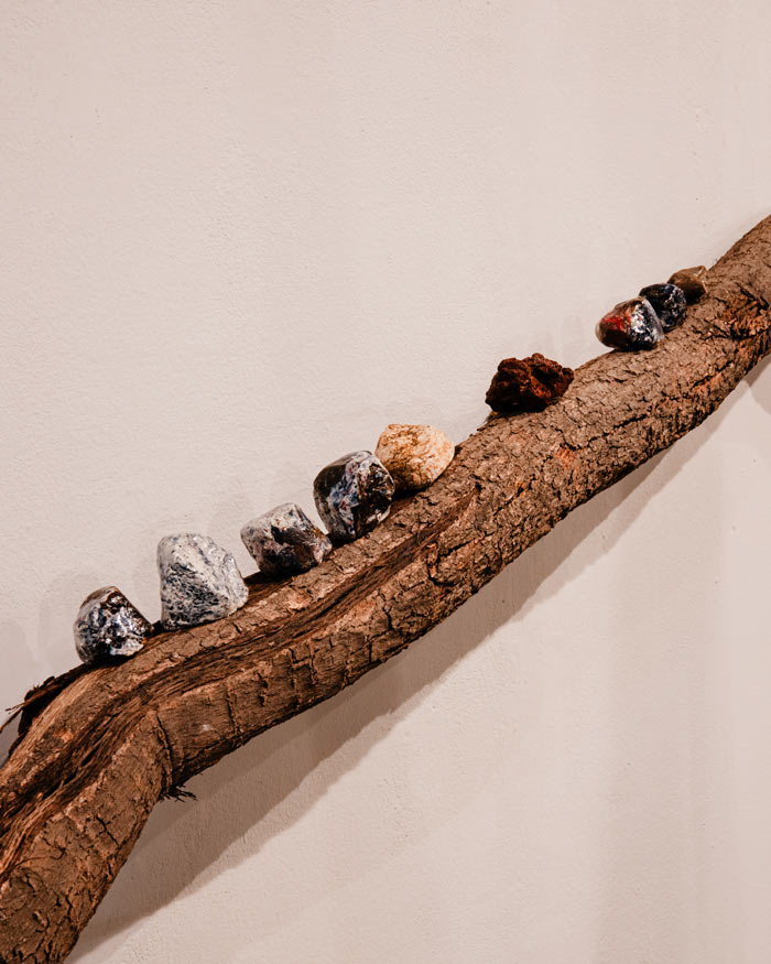 O gesto artístico de Carla Cruz e Cláudia Lopes aproxima-se de um cuidado geológico: observar, recolher, intervir apenas o suficiente para tornar visível o que já estava ali, oculto. É esse limiar entre o que permanece e o que se desfaz, como quem recolhe vestígios prestes a desaparecer. O encontro entre materiais intensifica, simultaneamente, a sensação de efemeridade e de continuidade. No cruzamento entre matéria encontrada e matéria transformada, ambas desenham uma cartografia que é simultaneamente íntima e crítica, revelando um mundo onde o humano não domina a natureza, mas se inscreve nela como mais uma forma possível. É dessa escuta atenta, quase ritual, que emergem sentidos novos, como quem desenterra com delicadeza camadas de tempo.