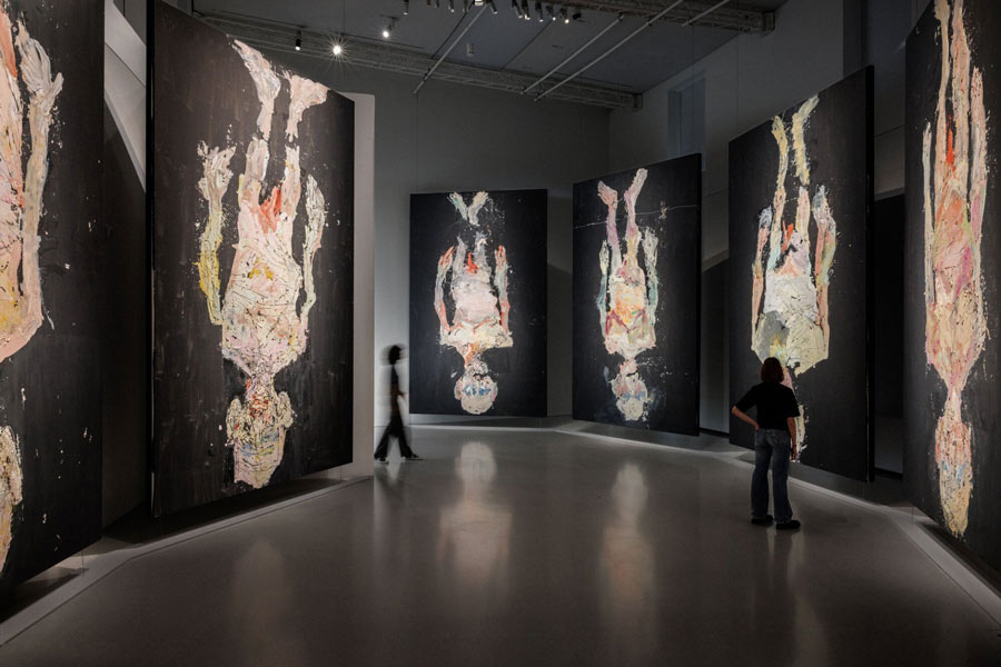 As histórias repetem-se sobre determinadas fisionomias, estruturas e arquiteturas. Para o bem e para o mal, elas são contínuas e disruptivas, colocando constantemente em questão as dicotomias. O projeto existe na conexão e na desconstrução entre localização geográfica e estados psicológicos. E tudo passa a existir sobre o mesmo edifício, como tem de ser para que a discussão se inicie. A arte traça uma conversa contínua sem início e fim à vista. No ciclo infinito do centro cupular da Bourse de Commerce – Pinault Collection, essa conversa ecoa. Indicia-se já nas placas de entrada, que anunciam a multiplicidade de possibilidades de movimentação do corpo, em visita à reflexão sobre a exposição Corps et âmes. Pensemos numa mão. O que uma mão pode construir e, por isso, representar? Sendo que a existência pode ser, por si só, construção e/ou desconstrução. The Hand of Miles Davis (1986) o retrato a preto e branco de um dos instrumentos de trabalho e vida do artista, trompetista e compositor americano, em ação e experiência, a fotografia de Irving Penn. Gesto reverberado do olhar que atravessa o metal do instrumento, da máquina, ecoando sons que levam a qualquer lugar.