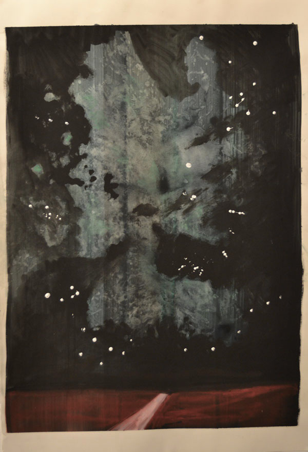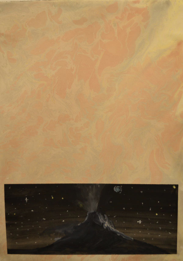 Para além do método experimental, outro elemento desempenha aqui um importante papel: a aplicação de sólidos conhecimentos técnicos. Está lá toda a gramática das artes visuais: os pontos brilhantes, a precisão das linhas, as manchas nebulosas, as margens bem delineadas, a qualidade do papel, a perfeita caligrafia a lápis de carvão, o rigor do desenho, o equilíbrio da composição e os cuidadosos fundos adamascados ou marmoreados tal como os vemos nas contracapas dos livros encadernados. A lição foi aprendida com distinção, porque, a observação de Pedro Calhau é de igual modo global e detalhista. Esta bivalência confirma-se na difícil representação das paisagens noturnas das séries “Nous” e “Estrelas”, permitindo ao espetador gozar de um verdadeiro espetáculo cósmico à frente do seu nariz. Por um lado, as estrelas refletem em pormenor a luz sobre a superfície de cada objeto, em contraste, com um breu profundo e os vulcões explodem no máximo da sua intensidade encadeando toda a folha. Na série “Our founding fathers” inspirada nos fundadores dos Estados Unidos da América, a pesquisa lança-se igualmente nas duas direções. Numa, o estudo analítico da perspetiva com sugestões de arte africana na representação dos bustos dos fundadores; noutra, as texturas resultantes dos efeitos estéticos da pedra e das cores da terra dominando os amplos fundos das gravuras.