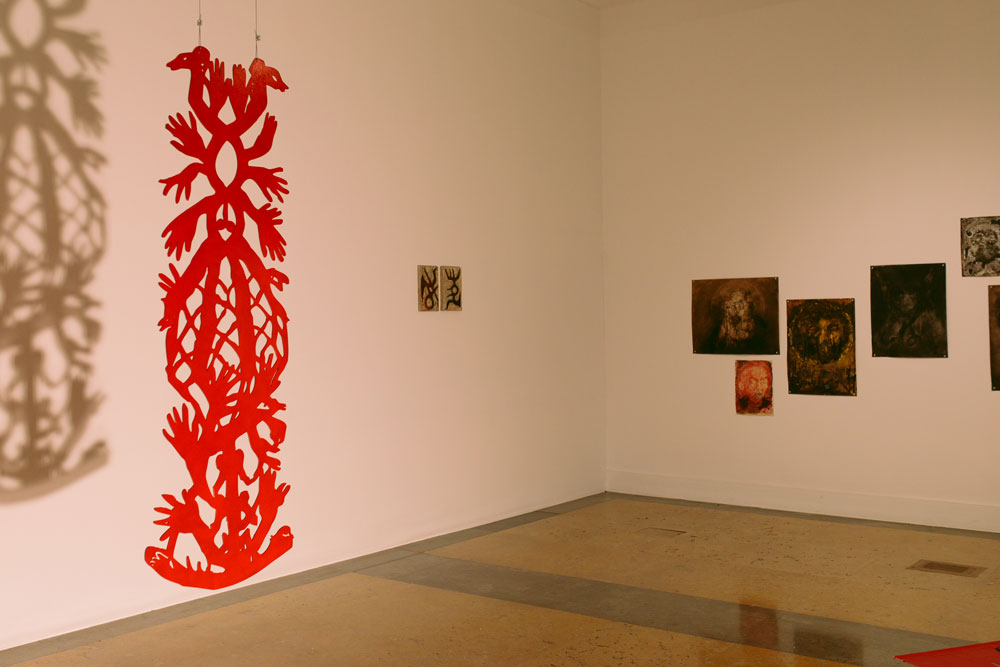 Refere Fiódor Dostoiévski, na sua obra literária “O Adolescente”, que “o riso é a mais certeira prova da alma”. [1] Na verdade, associá-lo à bondade, felicidade e comédia é prosaico, mas não é despeito reconhecer que também pode ser maquiavélico, cínico e sarcástico. E habitar num pendor popular moralista, no corriqueiro “muito riso, pouco siso”, ou mesmo ficar à mercê do fanatismo religioso pousado na ideia de que desvirtua a sociedade e a afasta da espiritualidade. Talhado pela sonoridade do riso, pejado de ´ironia azeda´, o sarcasmo introduz a exposição, a partir da entrada do edifício. Esta “Sonata para uma cave” (2023), de Odete, encontra um alinhamento com as outras obras da artista que apresentadas no subterrâneo do edifício, parecem fecundadas na ideia da etimologia da palavra “sarcasmo” que, derivada do grego antigo "Sarkázein", significa “rasgar/dilacerar a carne”. O riso, em onomatopeia, titula estas obras que sendo figurativas e abstratas contemplam a ação e os resquícios do terrível. Recortada em papel, corporizada numa existência singular, uma língua pontiaguda e ondulante, pintada a lápis numa tonalidade rosa suave, surge conectada ao desenho de um monstro de boca aberta, onde ajudado por dois diabretes, consome pequenos seres nas suas labaredas (“AHAHAHAH”, 2023). Os mesmos materiais, papel e lápis de cor, são utilizados em “AHAHAHAHAH” (2023), onde uma mancha acastanhada se estende por quase metade do suporte, e é acompanhada por salpicos da mesma cor e manchas subtis de outras colorações. Por sua vez, “AHAHAH” (2023) contempla uma mancha disforme de tinta acrílica e sangue falso, numa plastificação ‘gore’ de vermelho vivo. O vermelho que, simbolicamente plural, se vê associado à paixão, ao impulso sexual, à proibição, ao perigo e à violência, é a cor do fundo abstrato das duas pinturas de Francisca Sousa, da série “Red Sees” (2014), que situadas na entrada, representam duas decapitações. Uma figura feminina nua, empunhando uma faca, dirige-nos o olhar de soslaio, e segura a cabeça decapitada de um homem. Enquanto na outra pintura, uma figura masculina, seminua, segura triunfal a cabeça decepada de outro homem. A temática continua numa outra obra – “Orgulho” (2019) – que pousada no chão da sala A, dentro do edifício, revela duas mulheres: uma vestida apenas com uma camisola vermelha, que segura uma faca e a cabeça decepada de um homem, e outra que numa tela, circular de fundo verde, surge nua, mascarada e a segurar um bastão. A máscara que ao ocultar o rosto, e as suas expressões, permite-nos com maior liberdade encarnar personagens e satisfazer desejos, adensando o mistério do “Eu” que, na sombra, se recolhe para dar espaço à farsa. Podendo estar ligada à morte e aos rituais a ela associados, à crítica social ou à excitação trazida pela vida sexual. Apesar das pinturas aqui descritas não contemplarem quaisquer elementos iconográficos que, especificamente, nos conduzam a uma narrativa religiosa, é intuitivo associar o tema das decapitações a episódios bíblicos como o de Judite e Holofornes, de Davi e Golias e de Salomé e S. João Batista. Revela-nos George Bataille, que o erotismo está pejado de contradições pois a sua profundidade, é tanto religiosa, como horrível e trágica. O seu fundamento é a atividade sexual que, numa perspetiva puritana, cai sob a égide da proibição que, por sua vez, se arrasta para o enfeitiçamento da transgressão. O clarão de má luz que brota do erotismo, refere o filósofo, é possível encontrar igualmente na violência e na morte. Esta última, confessa-nos com uma certa vileza, abre em si o riso infinitamente alegre. E na “pequena morte” [2], acrescenta, desfaz-se numa sensação de triunfo sem chegar a morrer. [3] É nestas “Lágrimas de Eros”, na cúspide da interligação entre a dor, o erotismo e o prazer, mas também da violência e da morte, que as obras de Francisca Sousa se estruturam. Neste seguimento, impera a referência à xilogravura de Albrecht Dürer, “A Grande prostituta da Babilónia” (1497-98; tiragem séc. XVIII), presente na exposição. Tal porque este episódio bíblico é sugestivo da forma como a mulher foi sendo vista e tratada, ao longo dos séculos. Imperando nela a vilania da sedução e do erotismo, da sexualidade profana, da prevaricação e de todos os males do mundo. No livro do Apocalipse (cap. 17; 1:5), a mulher é caracterizada como a prostituta vestida de púrpura e vermelho, adornada por ouro e pedras preciosas, que montada sobre uma besta vermelha, será julgada. Na sua testa encontrava-se escrito: “Mistério, a grande Babilónia, a mãe das prostituições e abominações da terra.” [4] Representando, simbolicamente, a figura da prostituta, a depravação, a ostentação e a deslealdade da Babilónia, face aos preceitos da religião e de Deus. A sexualidade é um tema recorrente de outras obras da exposição, que procuram confrontar e desmistificar os preconceitos ainda existentes. Proclamando a liberdade de ser e escolher que, na verdade, deve imperar. São exemplo, as pinturas especulativas de Rasmus Myrup, “Homo Homo Erectus (Forest Fuck)”, 2018, “Homo Homo Neanderthalensis and Sapiens (In the Field)”, 2018, e “Homo Homo Erectus (In the Grass)”, 2023, que encenam a pré-história da homossexualidade humana, através da imagética homoerótica, sexual e pós-pornográfica. E que afirmam o combate à ignorância que ainda nutre a visão de que a homossexualidade é antinatural. E saliente-se o vermelho nas molduras, numa possível relação com a simbologia da cor, já suprarreferida. A sexualidade é também abordada, sem puritanismo, nem perversão, através de “Brazil Solos” (2016), do artista António da Silva. Um vídeo, onde trinta homens brasileiros homossexuais, surgem nus, contando as suas experiências sexuais enquan
