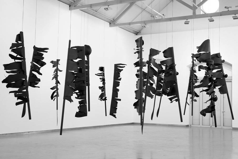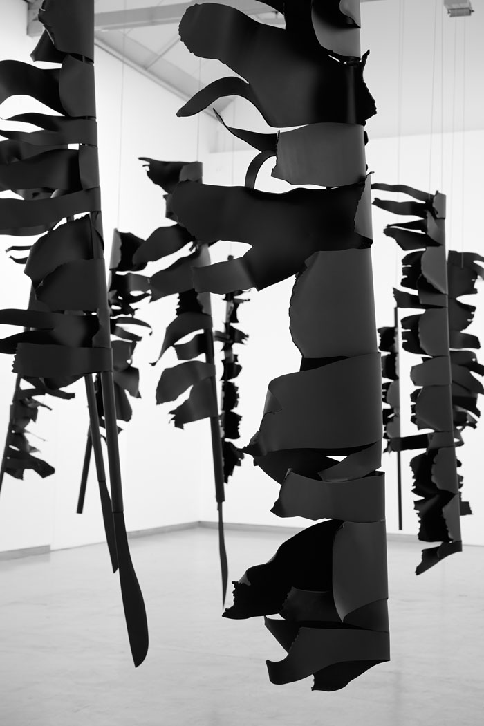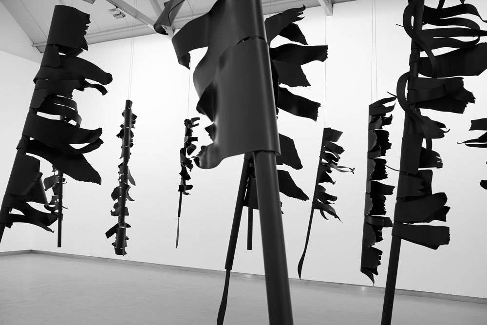 O homem contemporâneo, portanto, pode ser o único capaz de navegar simultaneamente no tempo antigo e no futuro, reconhecer as trevas do seu tempo, e o obscurantismo da sua época. O ferro pintado a negro, usado por Rui Chaves, há largos anos, também enfatiza as não sombras, ou a não forma, ou a forma que se dilui, erode, e degrada ao longo do tempo. De um certo modo evoca as coisas finitas, e o pensamento em Espinosa como o tempo, o limite, a duração. Para os homens as coisas deparam-se, ou afiguram-se, divisíveis, quebrantáveis, limitadas pelo seu tempo finito. A ideia de tempo. A ideia de que se pode fixar um pensamento, uma ideologia, um momento no tempo, só pode ser uma invenção humana. Podemos constatar, por isso, que nem todas as coisas são infinitas. Ou melhor, que se lhes damos, ou queremos dar propriedades infinitas, somos nós que imprimimos nelas essa faculdade. E quando algo tropeça no acidente, ou cai no esquecimento, por julgarmos que é invencível, eis que se debate com a finitude, com o torpor da sua limitação. Talvez por isso Espinosa fale em medida, aquela que só o Homem pode reconhecer.
