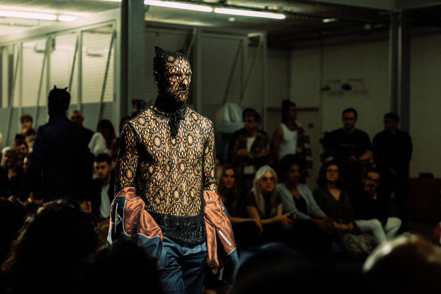 Nuno Gama: A Joana deu uma festa no seu Atelier, na última ARCO. Ao mostrar o espaço a uma pessoa amiga, de repente tive uma visão de um homem a atravessar todo o espaço, tipo um Dervixe rodopiante, com uma saia gota/valquírias, vestida. Ao mesmo tempo que tinha uma antevisão da coleção.