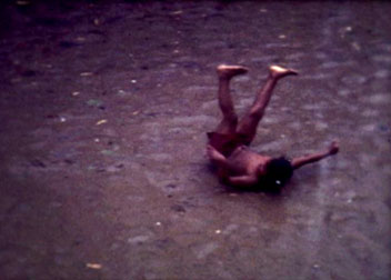 CG: Nesse caso, são duas performances diferentes. A primeira — El pintor tira el cine a la basura — é uma captura de uma performance da realidade. Ela me foi dada, ela me é oferecida pela realidade. Eu não pensei nela, não a produzi. Simplesmente aconteceu — é uma forma de estar no mundo olhando para ele e ver o que ele quer te dizer em alguns momentos. Tenho vários filmes assim — como Da janela do meu quarto (2004), Peiote (2006)… todos com crianças, fazendo performances espontâneas.