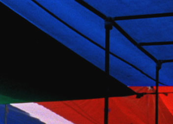 Voltei lá com o pessoal do Grivo, que faz a trilha sonora, para gravar o som. E aí comecei a olhar para os toldos — aquelas cores, aquele tecido leve. Pensei na palavra “peso” (a moeda) e no trocadilho com “sin peso”, sem peso. Aqueles toldos são, ao mesmo tempo, a estrutura que protege o vendedor e o que o sustenta financeiramente — mas também são leves, suspensos.