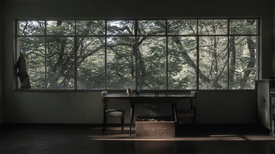 O contexto era uma exposição minha em Burgos, na Espanha — uma retrospetiva de vários anos de trabalho. Estávamos montando as obras e havia um pintor de parede cobrindo a tela onde ia ser projetado o filme Da janela do meu quarto.