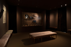 JOÃO PENALVAPavlina e o Dr. ErlenmeyerFIDELIDADE ARTE Largo do Chiado, 8 1249-125 Lisboa 16 ABR - 25 JUN 2010 João Penalva tem trabalhado ao longo da sua carreira muitas vezes sobre os ambientes e sobre a memória de uma forma que poderíamos considerar quase antropológica ou arqueológica nas sua pulsão primeira. Mas há muito pouco de pulsão e muito de trabalho árduo, pensamento aprofundado e investigação na sua obra. Em “Pavlina e o Dr. Erlenmeyer”, apresentada na Chiado 8, Penalva fá-lo novamente conseguindo um ambiente sensorial extraordinariamente envolvente e perturbador. Nesta exposição, Penalva consegue uma coerência formal e de significado brilhante, através de uma associação de ideias entre todos os objectos expostos e o filme apresentado, partindo da personagem do Dr. Erlenmeyer. É quase um jogo. O Dr. Erlenmeyer foi um químico nascido em 1825 que entre outras coisas, estudou o conceito de valência que é a base do naftaleno. O naftaleno ou naftalina, é a base daquelas bolas que podemos encontrar nos armários dos nossos pais cujo cheiro afasta as traças. Traças de que fala o filme “Pavlina” e que come os tecidos. A partir daí todos os objectos existentes no espaço expositivo se relacionam entre si sob este tema. Pode parecer um dispositivo simples mas não é, porque o que apreendemos do conjunto de obras é muito mais sensitivo que racional. No entanto, este dispositivo demonstra um profundo trabalho de pensar uma exposição não apenas como um colectivo de obras de arte, mas sim como um todo. Neste caso, a obra de arte maior é mesmo a própria exposição que se torna toda ela numa instalação única, que passa pela recriação de um ambiente profundamente encenado e onírico. Inevitavelmente “Pavlina” (o filme) é a peça central da exposição. É também a única peça que já existia e que serviu de mote à construção da instalação. Vemos a imagem de um insecto (aparentemente uma traça), enquanto ouvimos o relato de “Pavlina K.” entomologista, feito no decurso de um estudo efectuado em 1977 sobre os sonhos na população reformada. O relato é sobre um sonho com traças que eram também o objecto das experiências da Dra. Pavlina. Enquanto ouvimos o relato e vemos o grande plano da traça, as legendas do relato são projectadas num ecrã por um projector de slides. Ouvimos o ruído dos slides a passar ao mesmo tempo que do filme nos chega um som perturbador que se assemelha ao barulho que faz a turbina de um avião. Este som de fundo acompanha-nos enquanto vemos as obras na primeira sala, sem que saibamos ainda de onde vem. É profundamente cinematográfico. É-o pela antecipação, como se estivéssemos no foyer de um grande cinema como os que foram destruídos em Lisboa nos últimos 20 anos e é-o da mesma forma que o silêncio nos filmes de David Lynch, que nunca é a ausência de som, mas sim um som surdo que nos perturba e alimenta a imaginação. Para Walter Benjamim “Aquele que se recolhe perante a obra de arte, mergulha nela, entra nesta obra” (1). Aqui, é fácil recolhermo-nos perante este ambiente quase assustador e assim mergulhar nele. Nesta primeira sala, forrada a pesadas cortinas de veludo onde quase sentimos o cheiro da naftalina, podemos ver vários objectos, que à laia de espólio arqueológico, nos contam a história que Penalva aqui evoca e encena. O ambiente é de tal forma envolvente que o visitante se sente um personagem da narrativa, quase um Poirot ou um Maigret, tentando adivinhar o significado daqueles despojos. João Penalva estudou e reside em Londres desde 1976. E embora a sua primeira exposição individual se tenha realizado em 1983 no Porto, não é sequer anual a frequência expositiva de João Penalva em Portugal. É por isso pena que lhe seja reservado um espaço menos conhecido do grande público, impedindo-o por ventura de tomar conhecimento com o trabalho de um artista tão consistente. Em “Pavlina e o Dr. Erlenmeyer”, João Penalva consegue um cruzamento equilibrado entre um trabalho que é inegavelmente conceptual, mas que tem uma abordagem formal objectiva e sólida permitindo uma comunicação directa com o visitante. NOTAS (1) Benjamin, Walter, Sobre Arte, Técnica, Linguagem e Política, Relógio D’Água, Lisboa, 1992.