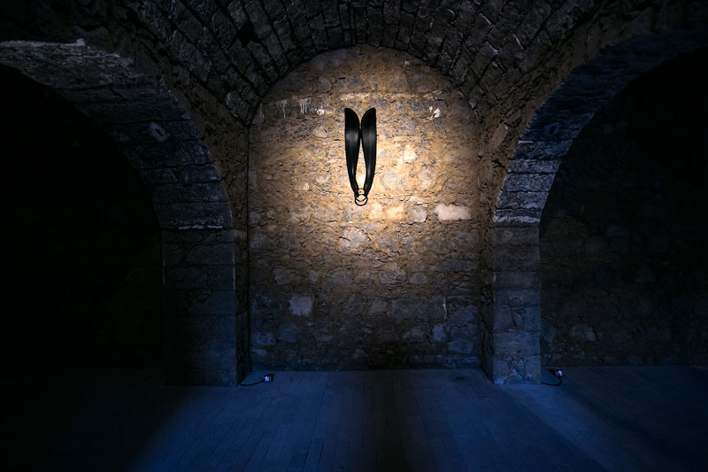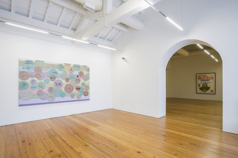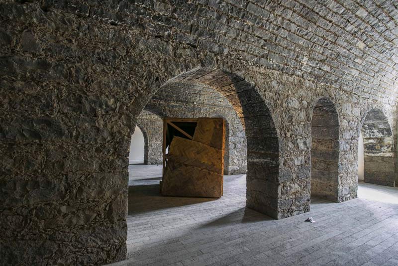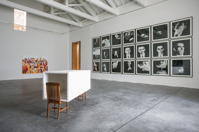 As afinidades electivas de Sérgio Mah e António Cachola cruzam-se numa oportunidade de visitar algumas das obras mais marcantes de uma das mais importantes colecções de arte contemporânea portuguesa. A disposição das obras dialoga com a configuração do novo centro açoriano, antiga fábrica de álcool requalificada que tem somado prémios pela inventividade da sua reapropriação. No espaço introdutório do edifício, somos apresentados a um preâmbulo que anuncia o ecletismo das obras expostas. A prova cromogénea de João Maria Gusmão e Pedro Paiva, intitulada Mola Paleolítica (2012), constitui-se numa composição triangular, no classicismo etnográfico das fotografias de expedição do final do século XIX. A qualidade da imagem e as suas cores remetem-nos para a contemporaneidade e as suas tecnologias, investindo de uma ironia fina os quatro homens que são retratados, conferindo-lhes um triunfalismo de descobridores. No centro da composição, uma estrutura de metal envelhecida, a partir do qual toda a composição da fotografia se estabelece, sendo que a pequena relíquia se apresenta como orgulho dos heróis. Mesmo se tudo aponta para a constatação que o objecto tenha sido colocado propositadamente, mesmo se a idade de ouro das escavações arqueológicas tenha passado, somos convidados a explorar o resto das obras como se nos passeássemos pelos espólios de uma descoberta, como se os objectos a contemplar se constituíssem como respostas a perguntas perdidas. A divisão em sete espaços principais pretende assim agregar peças segundo temáticas que, pela sua porosidade e diferença de propósito, se assemelham mais a vectores ordenadores: 1) o espaço como questão; 2) subjectivizações; 3) paisagens; 4) abstracções; 5) imaginário lúdico, 6) sintomas da cultura contemporânea e, finalmente, 7) uma exploração das especificidades do espaço da cave do Arquipélago. No primeiro espaço, a atenção é absorvida num primeiro tempo pelos volumes de José Pedro Croft e, ocupando um quarto da sala, as construções em madeira de Rui Sanches que, em Sagrada família nos degraus (1982), procede a uma decomposição geométrico-afectiva do quadro com o mesmo título de Poussin (1648). Visto de uma determinada posição, as várias estruturas de madeira, pontuadas por conjuntos de elástico e contraplacado, assumem a forma das figuras da tela a partir da qual o artista se inspirou. A disposição da obra e a sua tridimensionalidade permitem ao espectador assumir outras posições, na qual as figuras se dispõem como “distorções” desse quadro primeiro, conferindo tantas leituras sensíveis quantas as posições possíveis de um corpo. No espaço dedicado a processos de subjectivização, somos confrontados à uma série de provas de gelatina e prata de Jorge Molder, num conjunto justaposto de vinte e uma fotografias a preto e branco. Uma vez mais, as leituras são múltiplas, dependendo se o sentido da leitura é feito horizontalmente, verticalmente, diagonalmente ou segundo uma lógica própria, deixada aos olhos de quem vê. Anatomia Boxe (1996,1997) é contudo uma série inquietante, já que o objecto representado é sempre o próprio artista, interpelando o espectador, simulando o seu próprio afogamento, rodeando-se por fumo, estabelecendo cada espaço pictural como uma unidade de leitura ambígua, passando do ameaçador ao nostálgico, desesperado ou derrotista consoante a orientação de leitura e o momento irrepetível da contemplação de cada um. Na mesma sala, João Leonardo propõe-nos uma actividade artística no sentido mais literal do termo, ao emoldurar uma enumeração das palavras que designam acções na língua portuguesa. Lista dos verbos (2006) remete para o primeiro significado de ars, um fazer, arriscando neste caso uma simulação de todos os gestos possíveis da nossa língua, ao longo de páginas de papel cuidadosamente escritas com tinta permanente, apaziguando as diferenças das coisas pela homogeneidade gráfica das palavras. As paisagens, feéricas ou indexadas ao real pela fotografia são o tema do terceiro espaço, onde encontramos o desejo de conter o infinito que caracteriza este motivo pictográfico na obra de Pedro Calapez, Contentor da paisagem (2004). No interior de um volume cúbico aberto, o artista pinta elementos paisagísticos, colocando a perspectiva de quem contempla na posição impossível de horizonte: uma tentativa poética e, enquanto tal, nunca falhada, de albergar uma imensidão visual num espaço quase portátil, permitindo invocar a gosto o esplendor longo que é o tema da paisagem. Quase metade das paredes do mesmo espaço são ocupadas por onze provas cromogéneas de Augusto Alves da Silva, constituindo uma série intitulada 3.16 (2003). As onze fotografias obedecem aos critérios do imaginário paisagístico açoriano: declinações de verde em prados, linhas divisórias negras, a tensão dos azuis do céu e do mar. Apenas um olho mais treinado, ou auxiliado pelo texto do artista que acompanha a obra compreenderá as diferenças que se estabelecem na repetição dessa mesma paisagem. Tratam-se de vários momentos do dia da Conferencia que juntou Durão Barroso, José Maria Aznar, George Bush e Tony Blair, que viajaram em aviões cuja chegada pontua as fotografias, manchas quase insignificantes na imensidão da tinta. Entre a primeira fotografia e a última existe uma diferença que a paisagem não denuncia: uma tomada de decisão militar cujas consequências se fazem hoje sentir, com maior intensidade que nunca, em todos os países que ela implicou. Ao registar a insensibilidade magnânime de uma paisagem de cartão postal, Augusto Alves da Silva oferece um testemunho inesperado e propositadamente politico. A cave do Centro de Artes acusa as especificidades climáticas da ilha de São Miguel, numa atmosfera húmida, pesada, enegrecida por muros de basalto e inexoravelmente fria que diverge dos espaços as