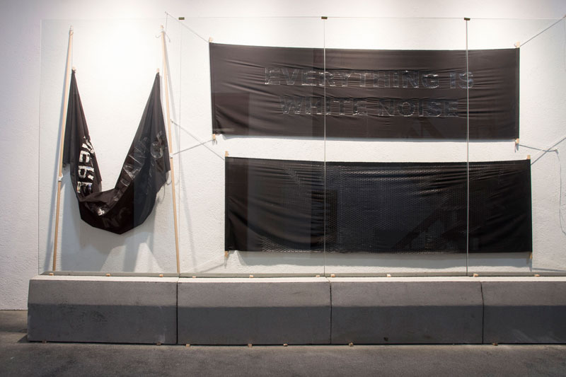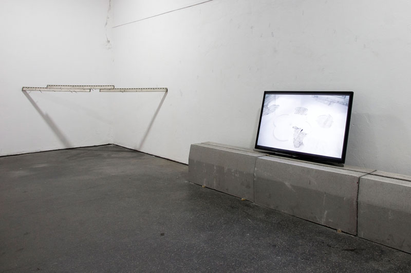 Em forma, encontramos implícito as suas variações, como variações de estar: a variação do espaço (forma) expositivo; a variação do percurso (forma) expositivo; a variação do processo (forma) expositivo – bastante forte para especulação retórica, isto, de expôr para cima e em contínua espiral - variação do público; variação do conforto e do confronto. Entre peças e autores e obras e público: variações na voz, variações no lugar do dito – que tornadas um todo – se conjugam na voz plural que uma exposição colectiva é, dando a ver uma forma (variação) inteira e una, a número dois. E mui importante será lembrar que forma=conteúdo, sempre. Variações de um cinzento-nostalgia: sete vezes cinzento (branco e beje muito, muito claro, MATE MATE: como escreve- diz na sua voz, Cristina Mateus) A cada si, a sua pedra – a que rompe as suas janelas, a que parte os vidros antes de fugirmos. Estamos todos tão sóbrios que estamos todos tão lúcidos que todos estamos conscientes: E melancolia não carrega a nota de um tom moral. É só triste, triste como uma condição de estado. É lúcida, e por isso é triste. A cada piso, um grito. A cada piso um silêncio. Um grito-silêncio paradoxal, que energiza as condicionantes do mundo – do estado – para dar a ver, com uma delicadeza polida, onde estamos, como vivemos, o que acabou, quais as nossas nostalgias, as nossas partilhas. Variações no2 é da cor do Porto, cidade de uma nostalgia sempre em potência, com esse tom tão próprio que é este de vivermos ainda num estado de resignação. 7,6,3,5,4,2,1 go... No piso abaixo, o sexto andar desta Galeria Vertical, Andreia Santana (Lisboa,1991) traz-nos o fim como um início – tal como a minha escolha de começar o percurso na decrescente - onde a colaboração com os antigos trabalhadores da extinta fábrica de sabão, em Lisboa, na criação de uma peça que é, à semelhança de Maria Trabulo, um gesto colector de memória. Quoting Exercises on Disappearance torna presente uma força colectiva no processo de produção de um conjunto de peças em glicerina - reprodução do varandim do miradouro - a única construção que ainda resta da antiga fábrica. Os trabalhadores, durante o seu período de trabalho, produzem o sabão que, inevitavelmente, se vai transformar naquele que utilizam para “lavar as mãos”. O exercício da produção é, simultaneamente, o exercício do esquecimento. Quoting Exercises on Disappearance carrega perguntas: quem são os protagonistas ou agentes nestas desaparições? As forças colectivas ou os espaços? Caminhamos todos – protagonistas de cíclicas desaparições – para um lugar onde somos memória- reprodução de nós próprios, força humana? Cristina Mateus (Porto, 1968) pergunta-nos palavras para quê, agarrando-se a elas. Até aos dentes. É onomatopaica a viagem de olharmos o vidro expiatório. Um dentro-fora especulativo, que nos lembra não só de onde estamos – uma exposição dentro de um parque de estacionamento – como nos atira à cara esta falta de sentido que é sermos seres de linguagem, quando as palavras são tão pouco face ao mundo. A.B.C. comporta um jogo interno de questionamento que é, sobretudo, auto-crítico: “A representação afasta-se sempre da realidade. É um processo de compensação”, escreve Cristina Mateus no texto que acompanha a obra. E no entanto, aqui estamos, neste limbo de tornar presente, voltar a tornar presente, este pensamento sobre o próprio ser-presente. A.B.C.: um início que é uma sigla. Então, um início que é vários inícios e que, por aí, nos inicia erradamente. Z. ZzzzzZzzzzzZ. Z.z. Não há hipótese, já estamos aqui (na linguagem). Que não é o mesmo tom que Fernando José Pereira (Porto, 1961), com as suas faixas protesto-manifesto, entre o argumentativo e o afirmativo, usa: HERE WE STAND. WE HAVE NO CHOICE. Com um fatalismo duro, e muito menos lirismo do que todos os outros andamentos (da composição que esta Variação nº2 é), representa (e, lembre-se a salvaguarda de Cristina Mateus) uma não esperança, que ainda assim nos deixa ler o ciclo: extermínio-luto- protesto-tudo-after. E apesar disso, ainda há espaço para ser pensado o que é isto do Depois (Everything is White Noise): pode a obra como imagem ou metáfora, almejar significar que Ou seremos, como as próprias figuras de Vera Mota (Porto, 1982), ímpares, com os nossos limites recortados contra planos, grelhas, esquemas: toda a pele esticada contra a estrutura estática, analítica, cerebral? Até o trabalho de Vera Mota, habitualmente tão auto-referente na sua exploração matérica, de cor, de formas – assuntos próprios à pintura e a quem a trabalha e pensa ainda -, partilha no conjunto deste cinzento, a cor de uma politização discursiva. Não sei se estaremos, já não a medir a forma que o couro carrega (grelha como ferramenta primeira do desenho), mas a nossa própria pele – nós, animais, esticados, subjugados a planos, esquemas e pressões de uniformidade. Os olhos carregam-nos sempre respostas: se é cansaço, fúria ou encantamento. A luz que Luís Luz (Évora, 1987) evoca traz também a sua nota: tornar manifesto. E na mesma linha de cinzento de onde se começou uma leitura das obras, é importante referir que – sabendo ou não se quando os nossos olhos se tocam é dia ou noite (como pergunta Luís Luz no texto que acompanha a obra), a luz que carregamos neles – que são as afecções e afectos – é uma arma política. As mudanças profundas dão-se ou revelam-se também no lugar da nossa privacidade. E se estes estores podem controlar uma luz física, poderão também ser metáfora de um outro controlo lumínico. Uma nostalgia da intimidade, como se algo perdido dos olhos – a luz - nos deixe ver ainda a possibilidade de sermos (essa outra luz que não a luz). Primeiras e últimas escadas, um ruído que não é branco. O vídeo intitulado O Cego e a C