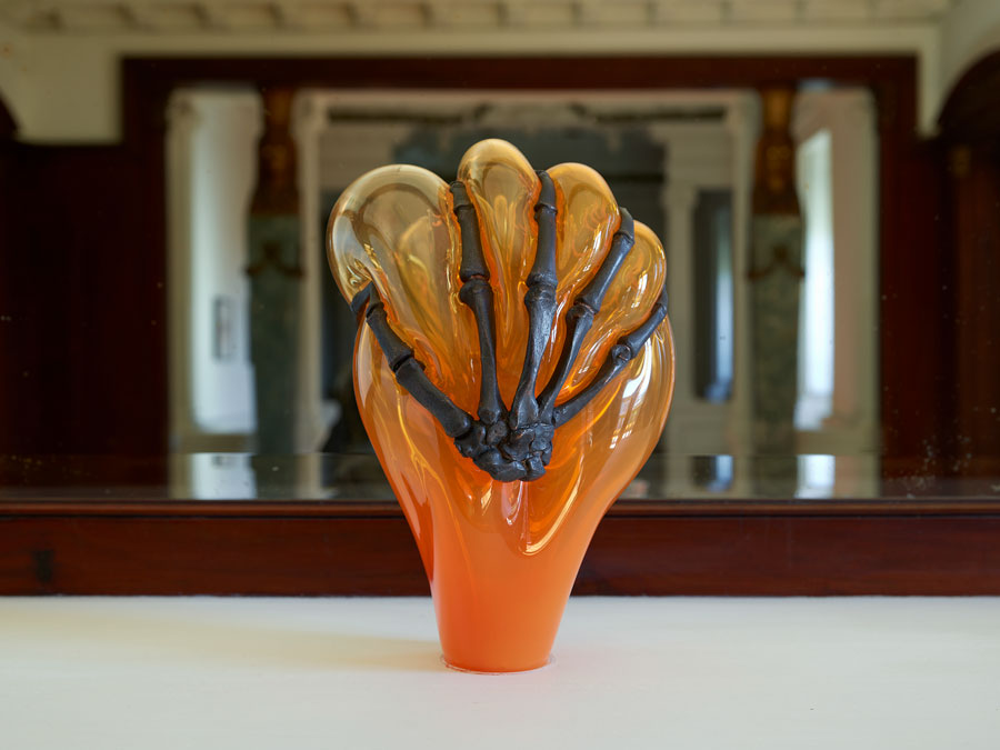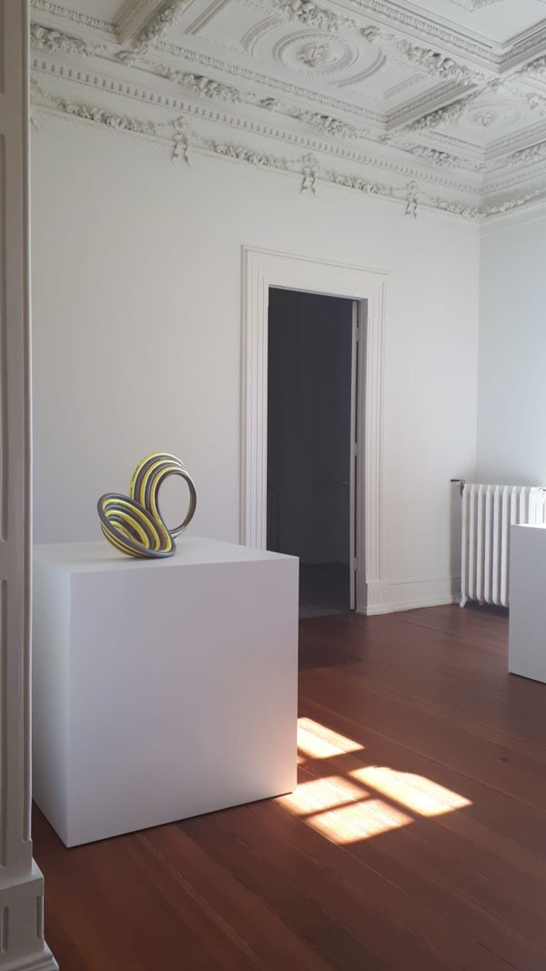 Suspensas em paredes ou no teto, repousando no chão ou delicadamente exibidas em pedestais e mesas, as obras de Moulène convidam-nos a explorar e refletir sobre conceitos como transparência, densidade, calibre, expansão, disjunção, interseção, tensão, cortes e direção, numa obra de dimensão social e política que nos apresenta hipóteses, numa exposição que testa uma nova dinâmica entre obras de arte contemporânea e espaços interiores burgueses.