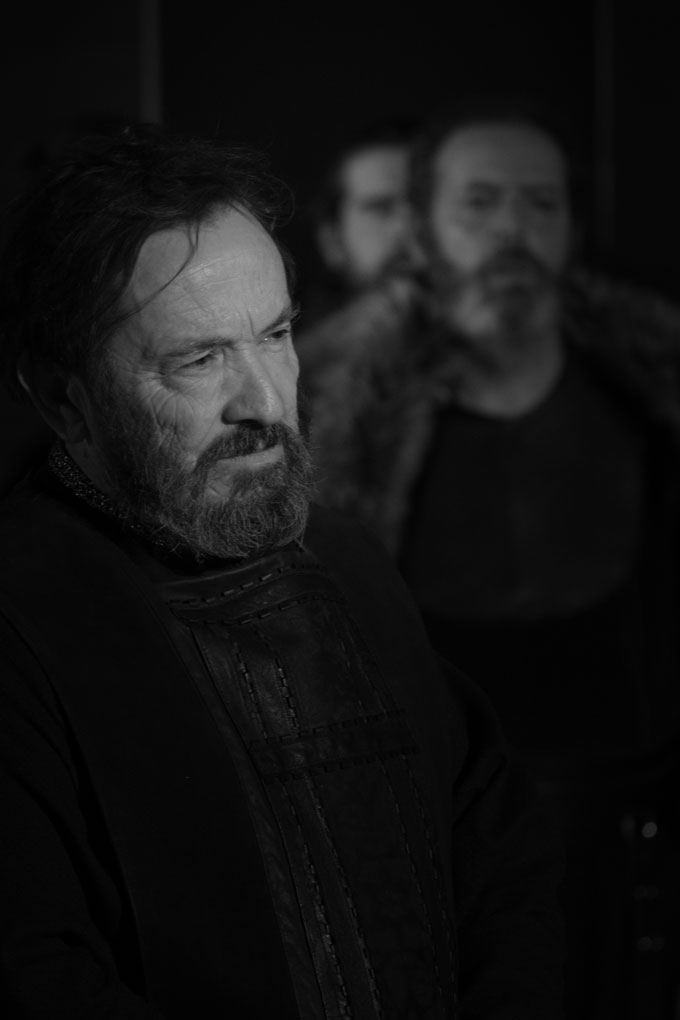 Logo de início a Mise-en-scène é um primor parecendo um bailado entre texto, representação e cenário tal a sua fluidez. As palavras e sua dicção têm importância fundamental em Shakespeare não fosse seu apanágio o wit, musicalidade e wordplay. E humor, até mesmo brejeiro. Sobre o meu receio, exagerei, é certo, pois com o Teatro do Bairro/Ar de Filmes existe uma certa rede de segurança com as suas produções e residências. António Pires continua a ser um excelente timoneiro e também foi feliz na escolha da versão do texto para encenar, pois a tradução feita por Álvaro Cunhal na prisão entre 1953 e 1955 é cunhada de simplicidade e fluidez, colaborando assim para uma maior clareza e compreensão do mesmo por parte do público, e porque não, de quem está em palco, e em palco estão quinze actores e nenhum deles destoa naquele belo bailado de palavras e movimentos. Idem para os figurinos, para o desenho de som do Paulo Abelho e para a música de Daniel Bernardes (habitual colaborador do Teatro do Bairro), esta de uma elegância certeira, e para o cenário minimal imponente (a fazer lembrar as esculturas de Richard Serra) oscilando entre a sensação de solidez e peso (como se paredes de castelo) e uma mobilidade suave e versátil. Interessante a verticalidade do mesmo (à qual muito ajuda o pé alto da sala). O efeito usado para a tempestade é de um primor poético e funcional (parabéns Rui Seabra, outro colaborador habitual da companhia).