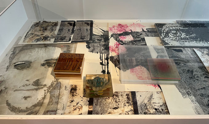 Longe da escala monumental que tornou o seu nome famoso, a mostra concentra-se na edição, espaço onde o artista investiga materiais, técnicas e processos com rigor apurado e liberdade poética. Entre serigrafias, gravações, esculturas e objetos tridimensionais, cada obra configura um laboratório de experimentação, onde papel, cerâmica, pedra e produtos industriais se encontram em combinações inéditas. O percurso não é cronológico, as obras são organizadas em núcleos que permitem leituras sensíveis e surpreendentes, destacando a relação de Vhils com o gesto artístico e o trabalho conjunto com outros criadores.