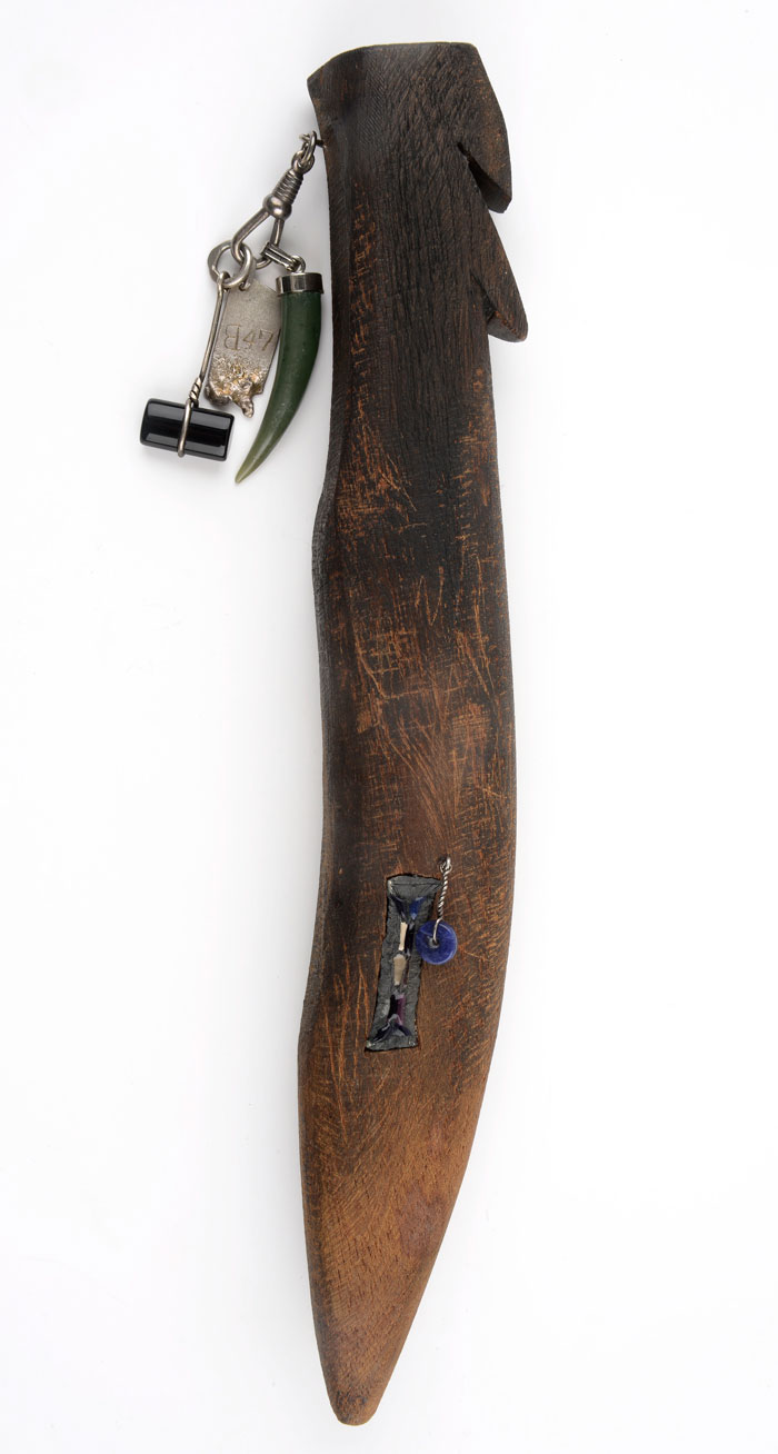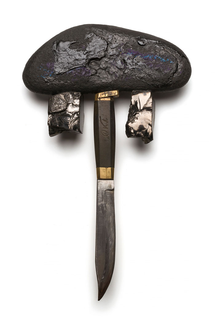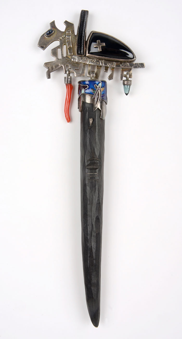 Magical: Smell of the Fish, 2016. Colar. Faca de peixe em prata dourada reciclada, argola de prata, tinta, almandina, pérola preta. Fotografia e cortesia Tiit Rammul. Coleção Liesbeth den Besten