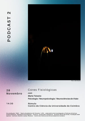 EUNICE GONçALVES DUARTE E MARTA TEIXEIRAQuarto Escuro de GoetheRÓMULO - CENTRO CIêNCIA DA UNIVERSIDADE DE COIMBRA Universidade de Coimbra - Departamento de Física\r\nR. Larga 3004-516 COIMBRA 28 NOV - 28 NOV 2025 CONVERSA/PODCAST: 28 de novembro (sexta-feira), 14h30, no RÓMULO - Centro de Ciência da Universidade de Coimbra Projecto Quarto Escuro de Goethe Direção Artística: Eunice Gonçalves Duarte Convidada: Marta Teixeira Depois da apresentação da performance-instalação Quarto Escuro de Goethe em Coimbra, o projeto entra agora numa nova fase: a dos podcasts. Nesta extensão sonora, artistas e cientistas dialogam em torno de 'Teoria das Cores', de Goethe. Cada episódio aborda um dos capítulos da obra, promovendo a reflexão interdisciplinar entre arte, ciência e filosofia — um dos eixos centrais do projeto. O segundo episódio realiza-se já no dia 28 de novembro, com apresentação ao vivo no RÓMULO Centro de Ciência da Universidade de Coimbra. Neste segundo episódio dos podcasts do projeto Quarto Escuro de Goethe, o olhar volta-se para como vemos as cores. Goethe dedicou o capítulo “Cores Fisiológicas” de Teoria das Cores às experiências da cor que pertencem ao olho: pós-imagem, contrastes, cores complementares, bem como os fenómenos da percepção visual. A convidada é Marta Teixeira, psicóloga com formação em Neuropsicologia e Neurociências da Visão que irá relacionar as observações de Goethe com os atuais conhecimentos sobre o sistema visual humano, os mecanismos de adaptação e a forma como o cérebro constrói a experiência cromática. Um encontro entre o olhar sensível de Goethe e a investigação neurocientífica contemporânea. ::: Eunice Gonçalves Duarte é performer e investigadora das artes performativas. Nos últimos anos tem-se dedicado à investigação do uso de meios low tech na criação da performance digital. Estudou teatro contemporâneo no University College, Dublin e estagiou no Abbey Theatre. Desde 2003, trabalha como criadora independente, tendo apresentado o seu trabalho em alguns países Europeus, tais como Finlândia, Grécia, Irlanda, Reino Unido, Alemanha, República Checa e Turquia. Marta Teixeira (Consultora Científica) é licenciada em Psicologia Clínica pela Faculdade de Psicologia e Ciências da Educação da Universidade de Coimbra desde 2001 e pós-graduada em Neuropsicologia pela mesma Faculdade, desde 2009. Trabalha atualmente como Gestora de Projetos na Associação Portuguesa para as Perturbações do Neurodesenvolvimento e Autismo de Coimbra (APPDA Coimbra) e colabora com o Instituto para a Imagem Biomédica e Investigação Translacional (CIBIT/ICNAS), onde foi Técnica Superior de Investigação em Psicologia experimental (2020-2023). É aluna de doutoramento em neurociências cognitivas do Programa Doutoral em Neuropsicologia da Faculdade de Psicologia e Ciências da Educação da Universidade de Coimbra, sendo o seu foco de investigação os correlatos neuronais da consciência, perceção visual e cor. Deste trabalho resultaram 2 artigos como primeira autora em revistas científicas internacionais da especialidade, revistas por pares. Foi Bolseira de Investigação da Fundação para a Ciência e a Tecnologia (FCT) de 2002 a 2008 e 2019-2020 em projetos de investigação e gestão de ciência nas áreas da Psicologia, Perceção Visual e Ciências Cognitivas - Faculdade de Psicologia e Ciências da Educação da Universidade de Coimbra, Centro de Ótica da Universidade da Beira Interior e ICNAS/CIBIT. Participou em 22 publicações científicas internacionais e nacionais e dezenas de comunicações (orais e poster) em reuniões científicas e ações de comunicação e divulgação científica. |